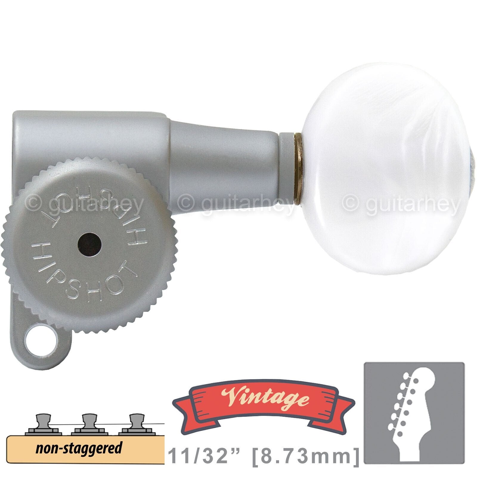 Hipshot VINTAGE 6-in-Line Locking Tuners Non-Stag OVAL PEARL Button SATIN CHROME