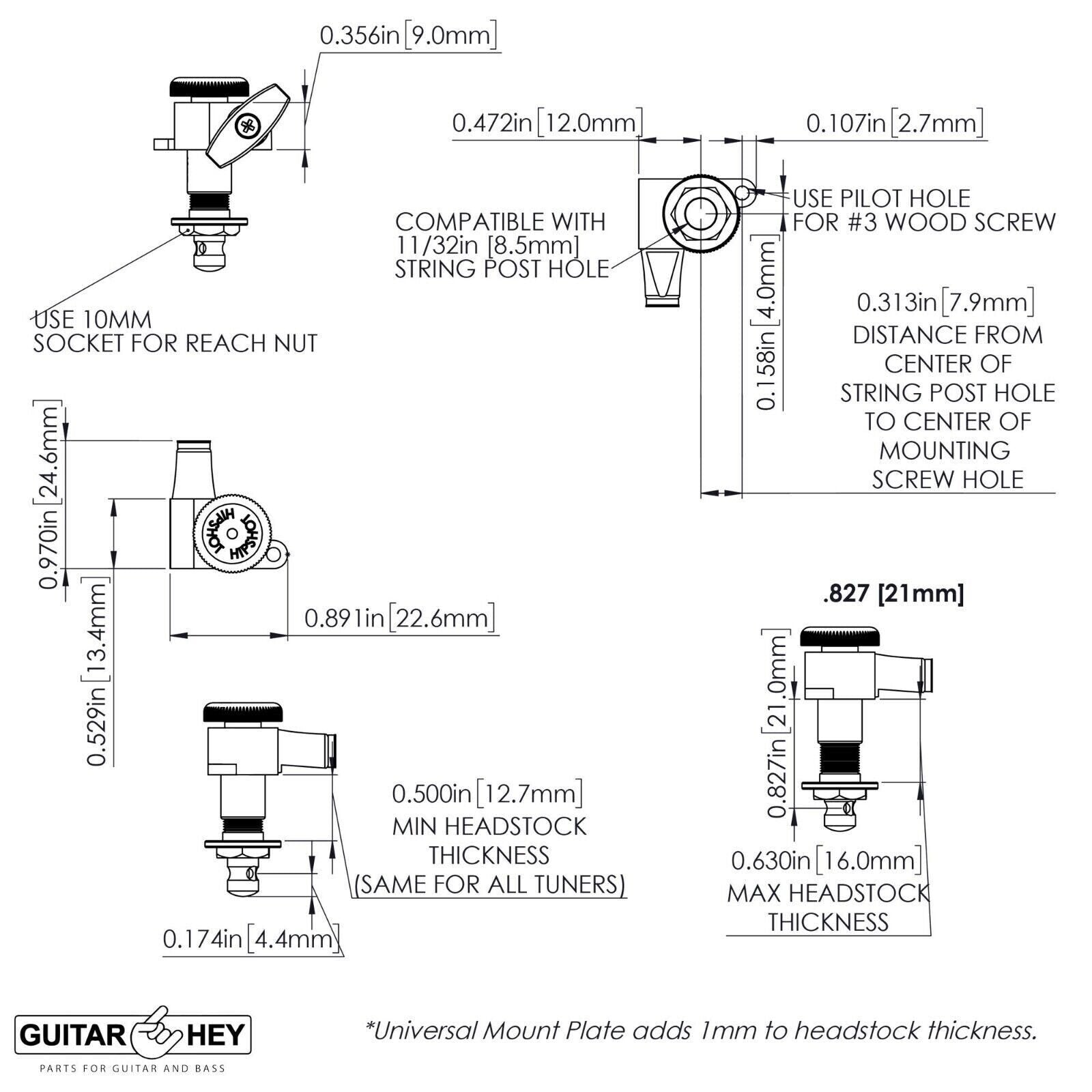 - Included UMP (Universal Mount Plate) for 6 Inline headstocks. No drilling or special tools required