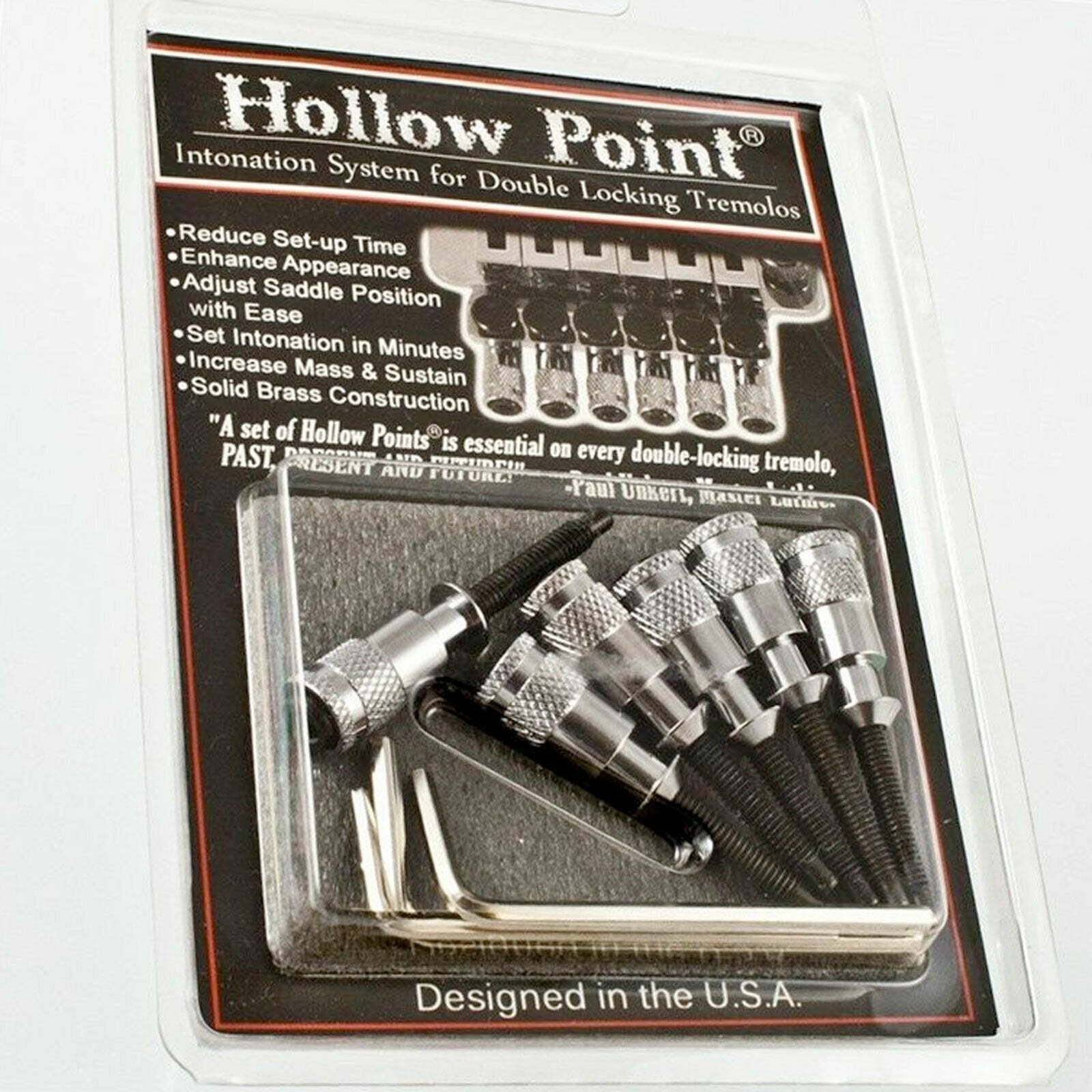 Hollowpoint intonation system for Floyd Rose®. Includes 6 inserts with screws and 3 mm, 2.5 mm, and 2 mm hex wrenches.