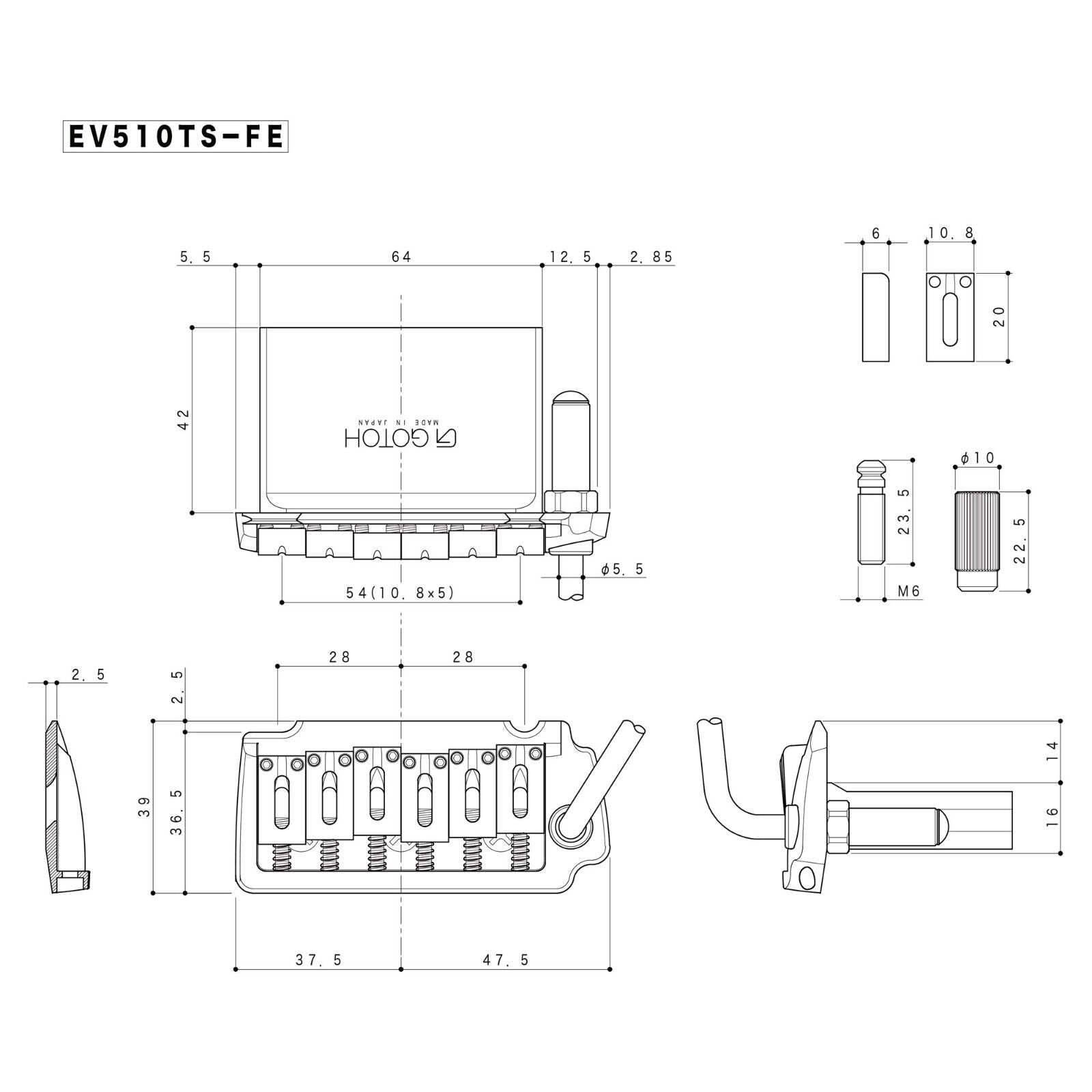 NEW Gotoh EV510TS-FE Non-locking 2 Point Tremolo Bridge w/ STEEL Block - CHROME