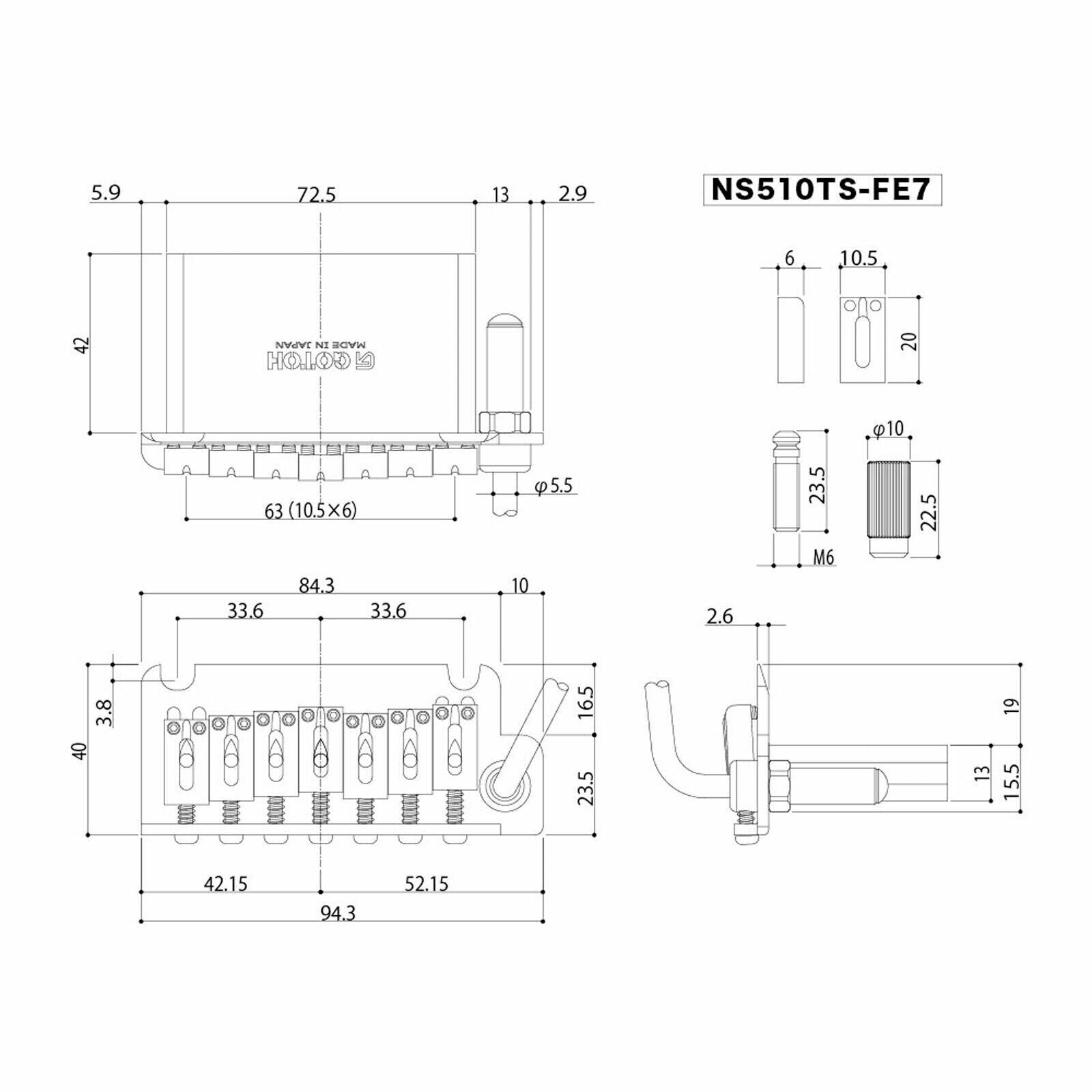 NEW Gotoh NS510TS-FE7 Non-locking 2 Point 7-STRING Tremolo Bridge 10.5mm - GOLD