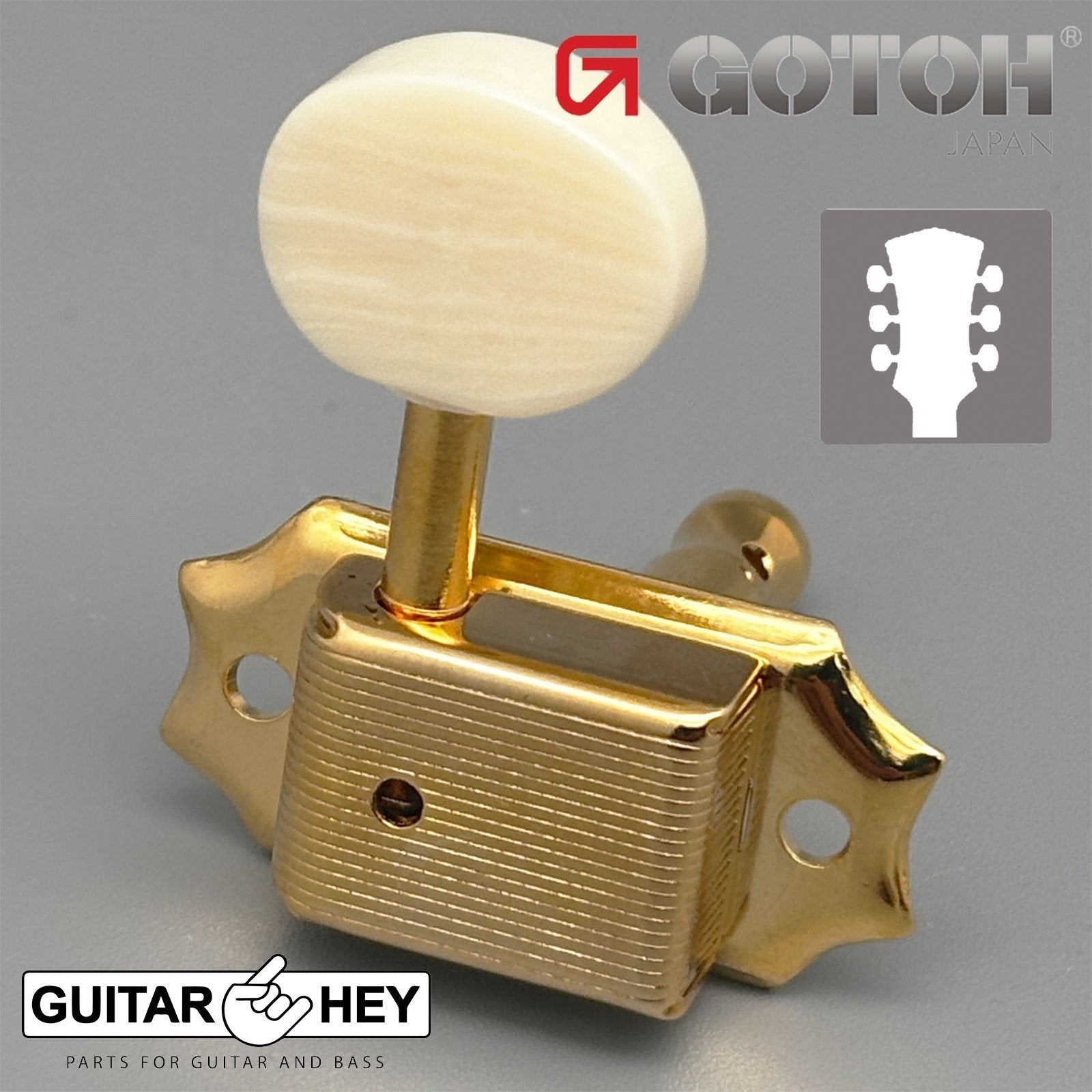 NEW Gotoh SD90-M5 Tuners Tuning Vintage Keys Set L3+R3 IVORY Buttons 3x3 - GOLD
