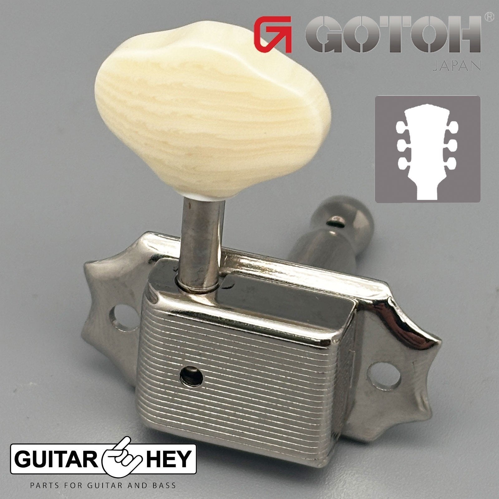 NEW Gotoh SD90-M6 Tuners Tuning Vintage Keys Set L3+R3 IVORY Buttons 3x3, NICKEL