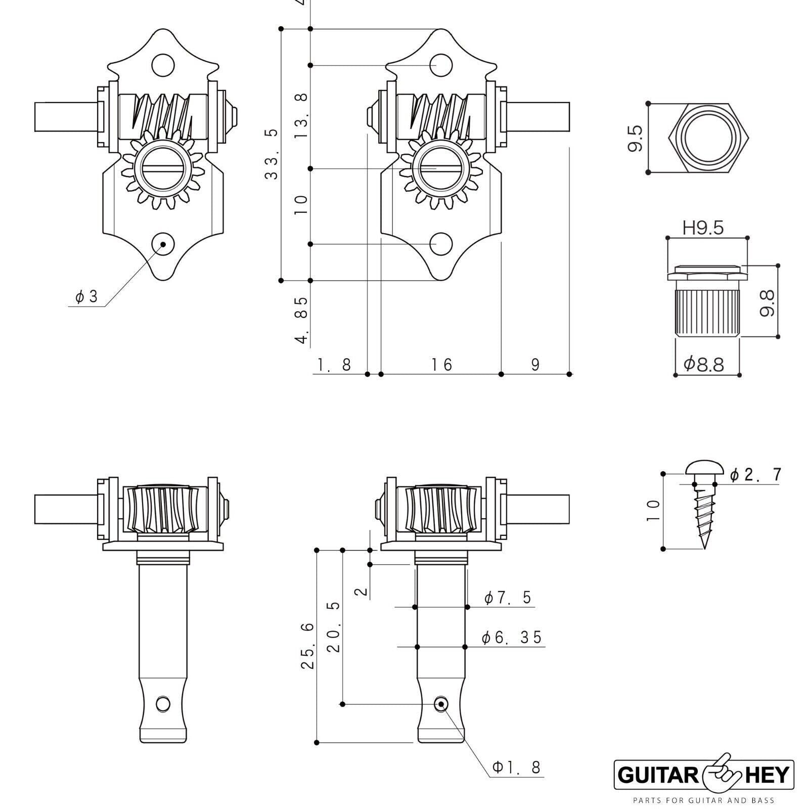 - Post length (to string hole): 20.5 mm. Total length: 25.6 mm