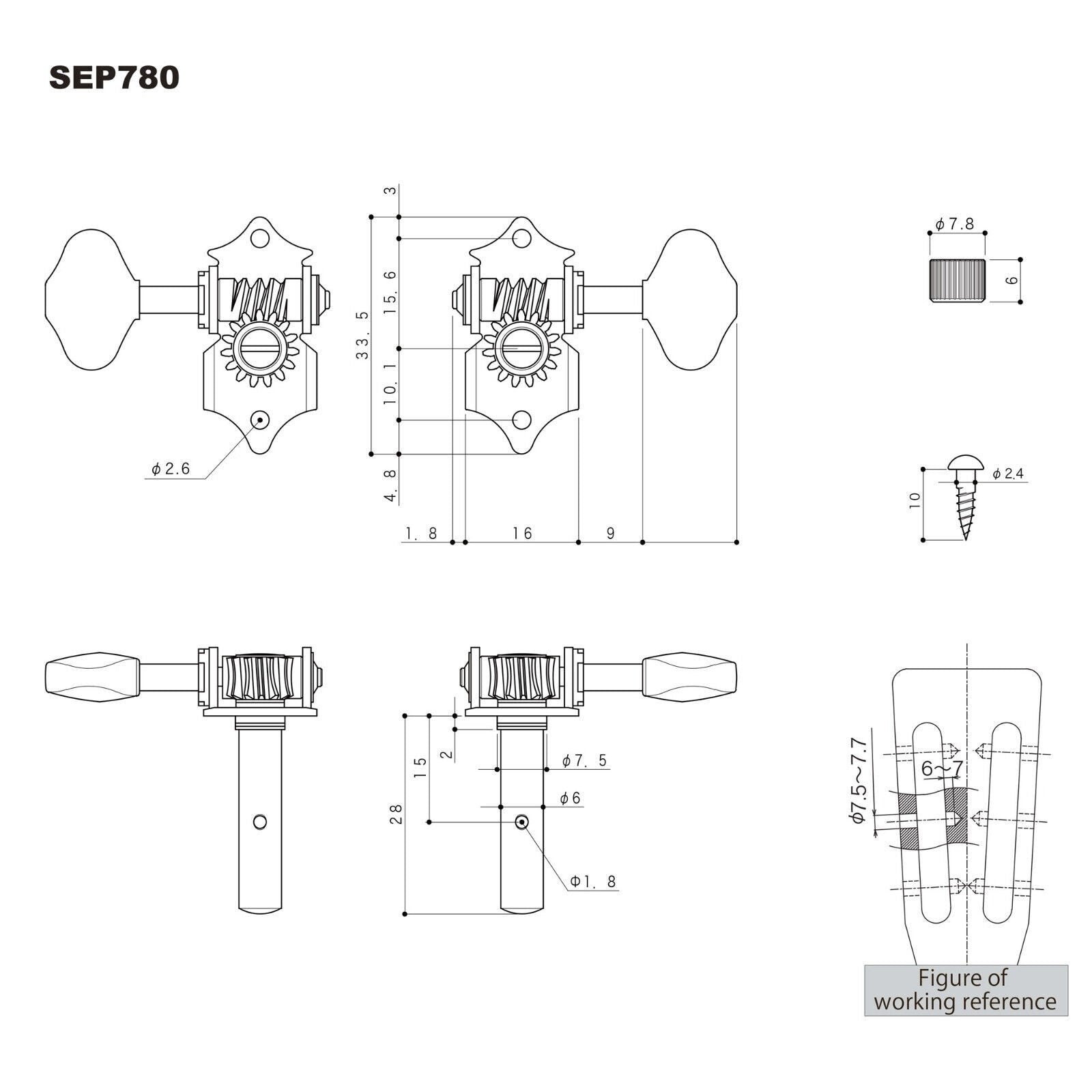 NEW Gotoh SEP780-06M Open-Gear Slot Head Keys Butterbean Buttons 3X3 - COSMO BK