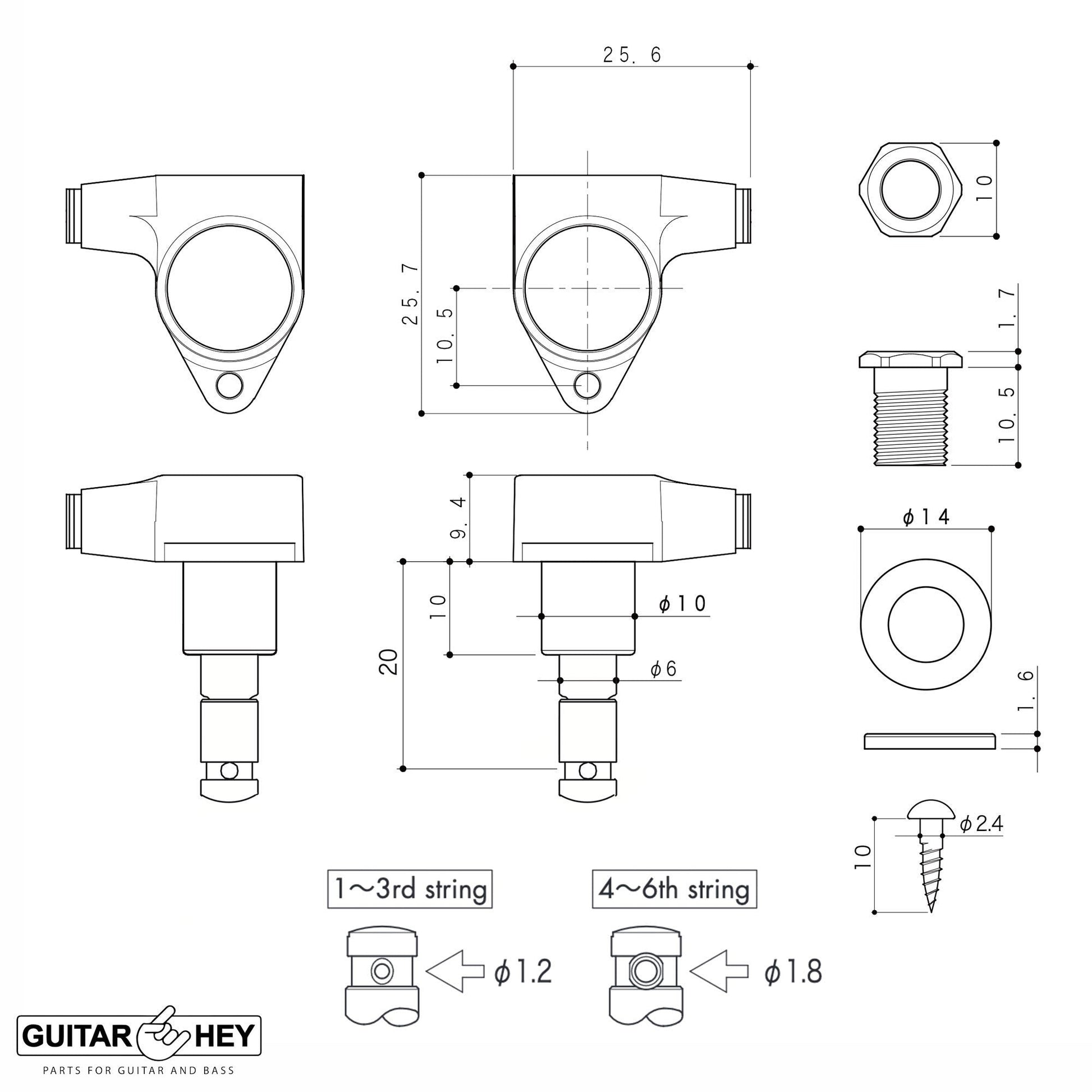 - 1st, 2nd and 3rd strings holes with 1.2 diameter for more positive string-lock and improved tuning stability