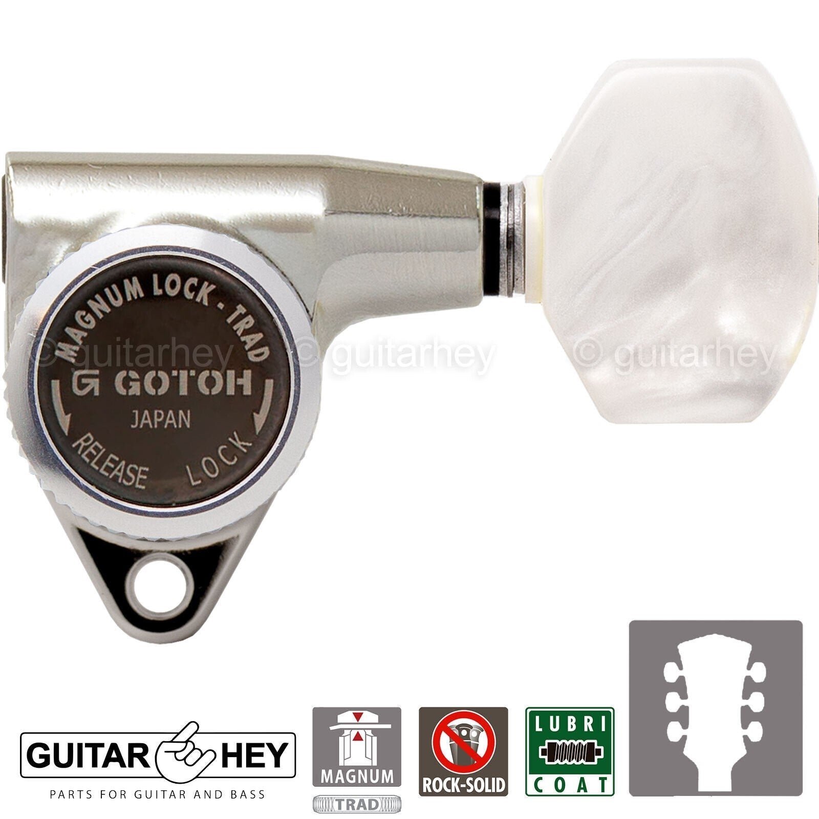 NEW Gotoh SG301-P7 MGT Magnum Locking Tuners Set PEARLOID Buttons 3x3 - NICKEL