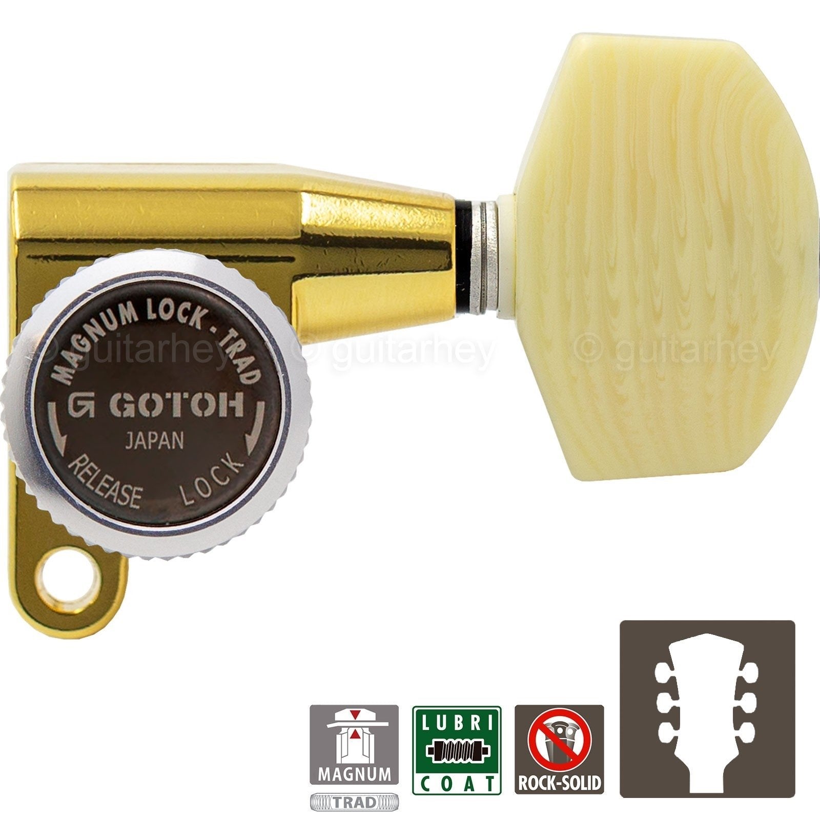 NEW Gotoh SG360-M01 MGT L3+R3 LOCKING Mini Tuners LARGE IVORY Buttons 3x3 - GOLD