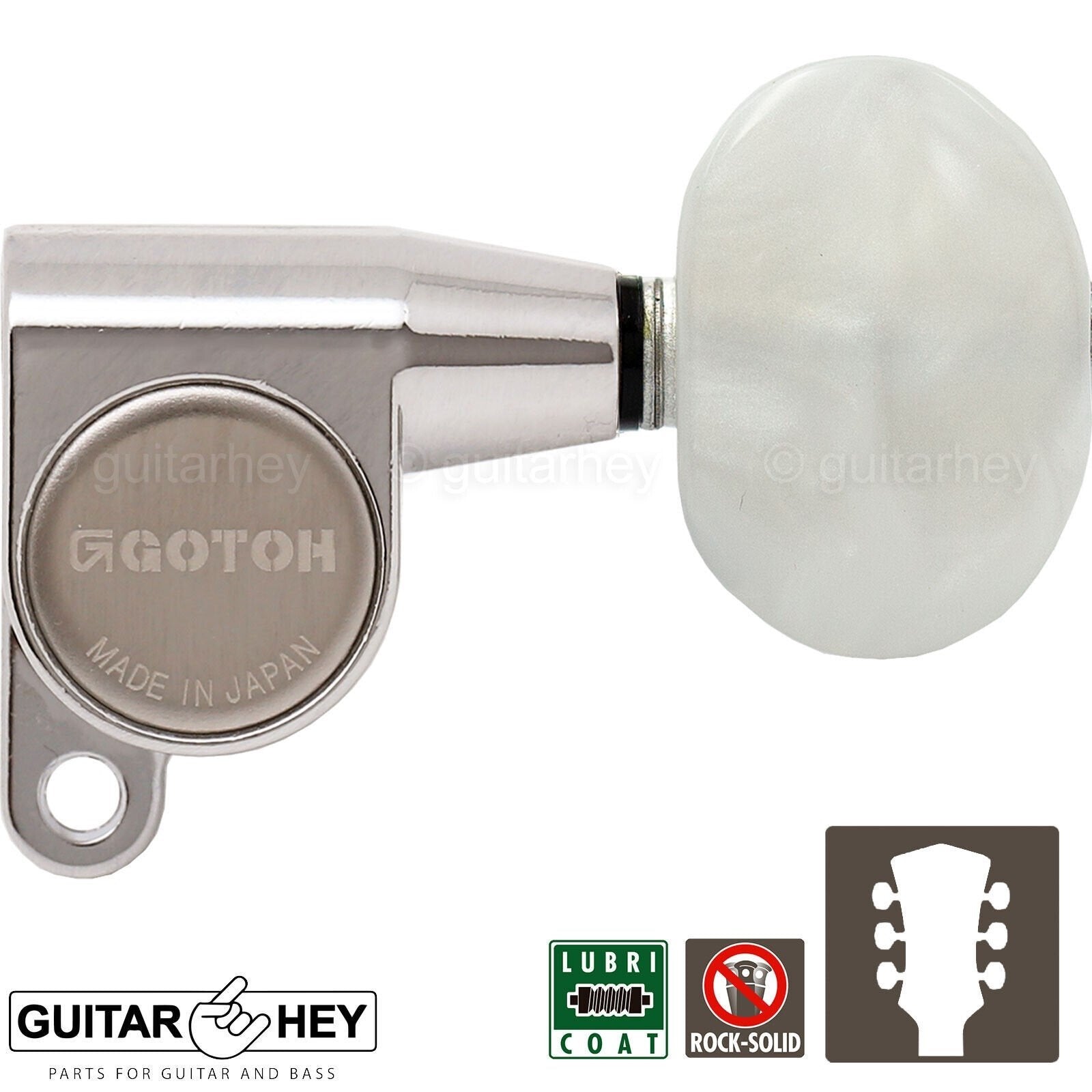 The SG360 tuning machines feature the accuracy and reliability Gotoh is famous for. They features a 14:1 gear ratio for precise, accurate tuning, and a die-cast enclosure that is permanently sealed and lubricated for years of smooth operation.