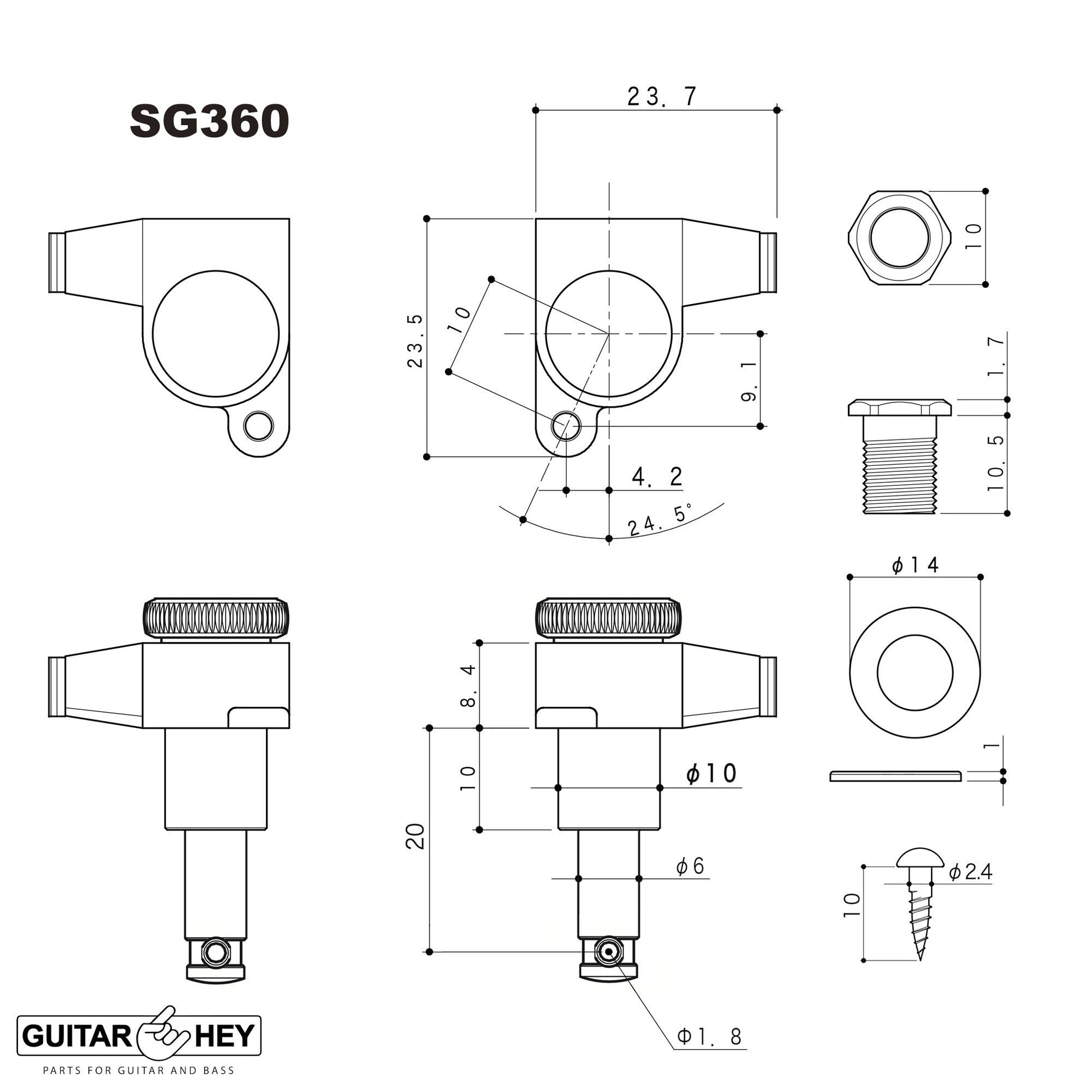 The SG360 tuning machines feature the accuracy and reliability Gotoh is famous for. They features a 14:1 gear ratio for precise, accurate tuning, and a die-cast enclosure that is permanently sealed and lubricated for years of smooth operation.
