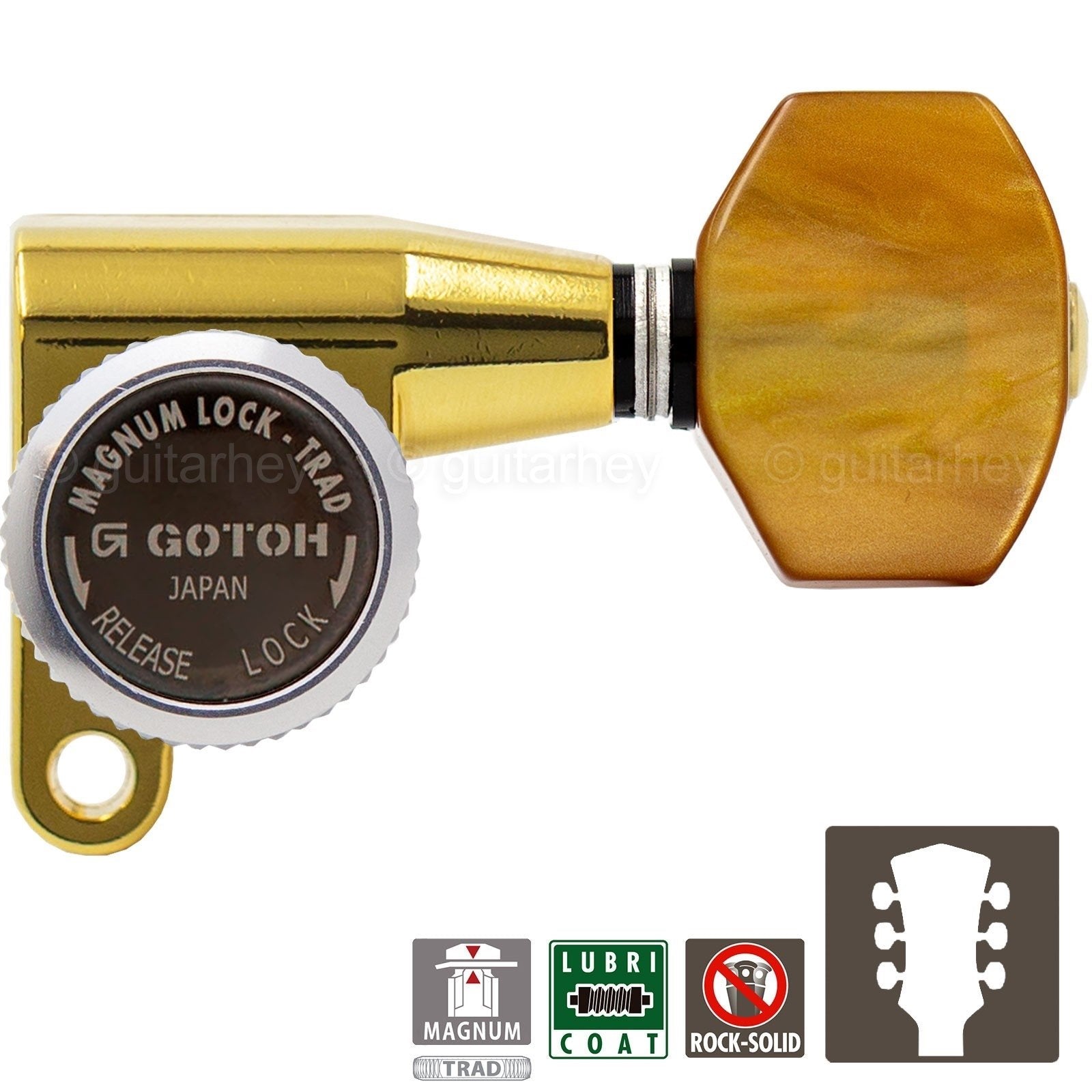 NEW Gotoh SG360-P8 MGT L3+R3 LOCKING Mini Tuners SMALL AMBER Buttons 3x3 - GOLD