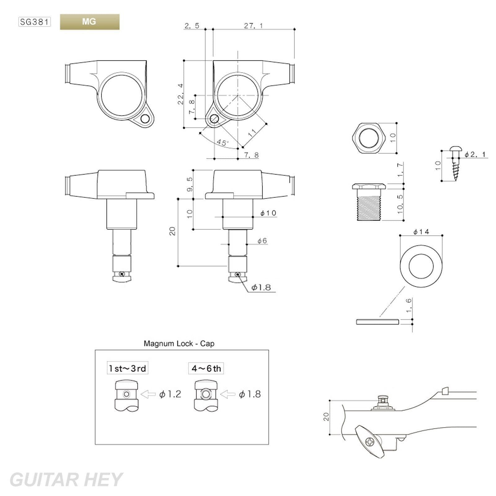 NEW Gotoh SG381-01 MG Magnum LOCKING Keys w/ LARGE Buttons 3x3 Set - BLACK