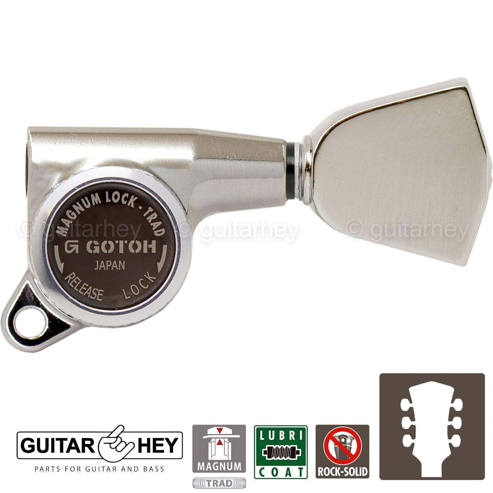 NEW Gotoh SG381-04 MGT MAGNUM LOCKING TRAD Large Buttons Keys Set 3x3 - NICKEL