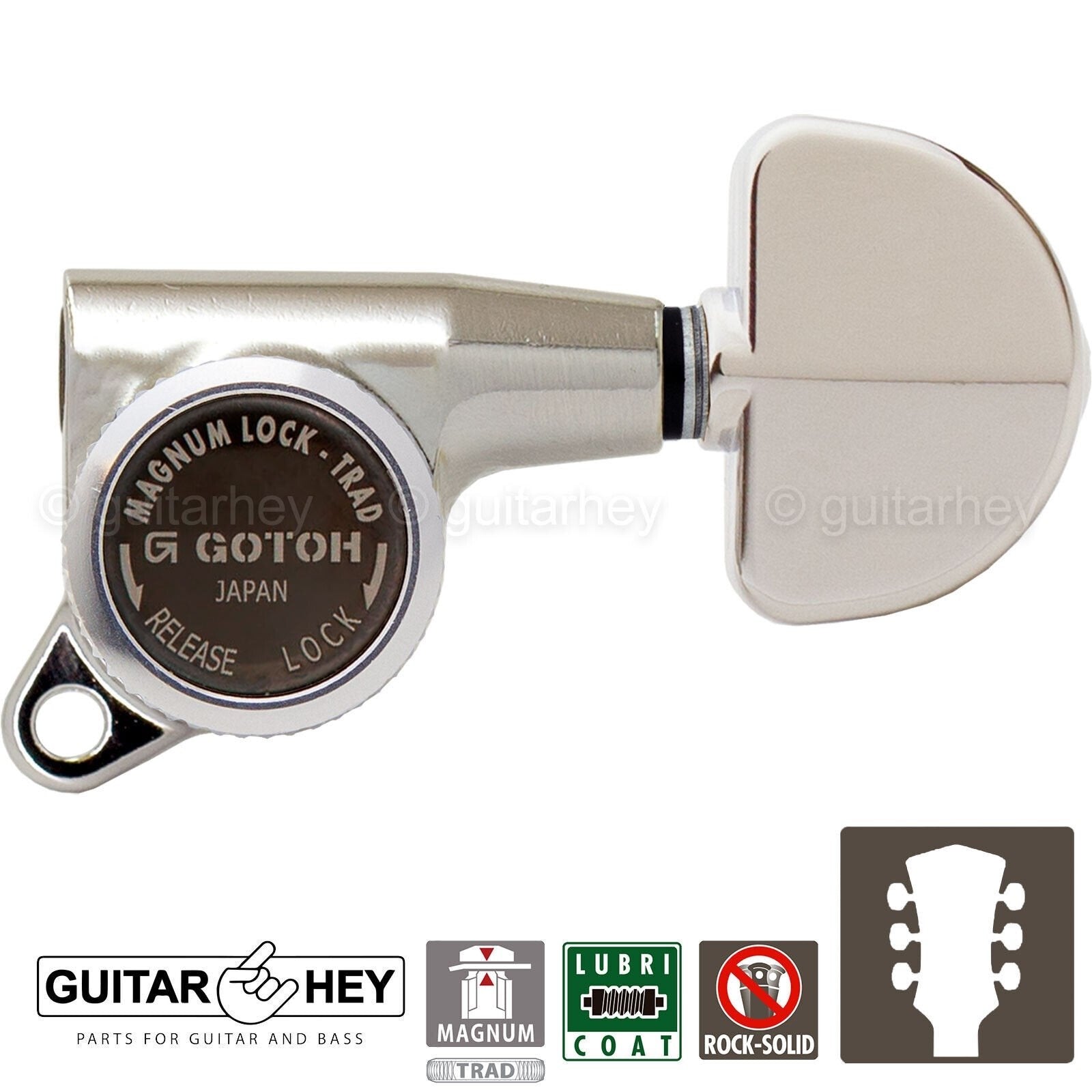 NEW Gotoh SG381-20 MGT MAGNUM LOCKING TRAD Large Buttons Keys Set 3x3 - NICKEL