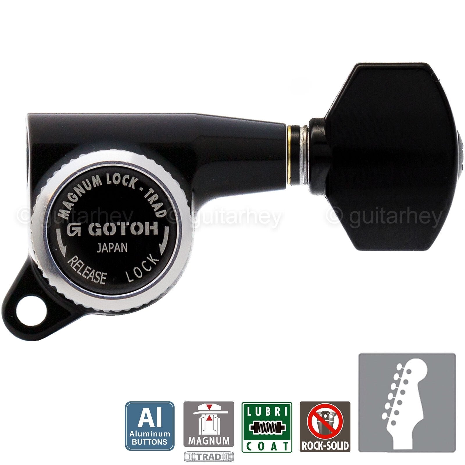 NEW Gotoh SG381-AB07 MGT MAGNUM LOCKING TRAD Set 6 in line Right Handed - BLACK