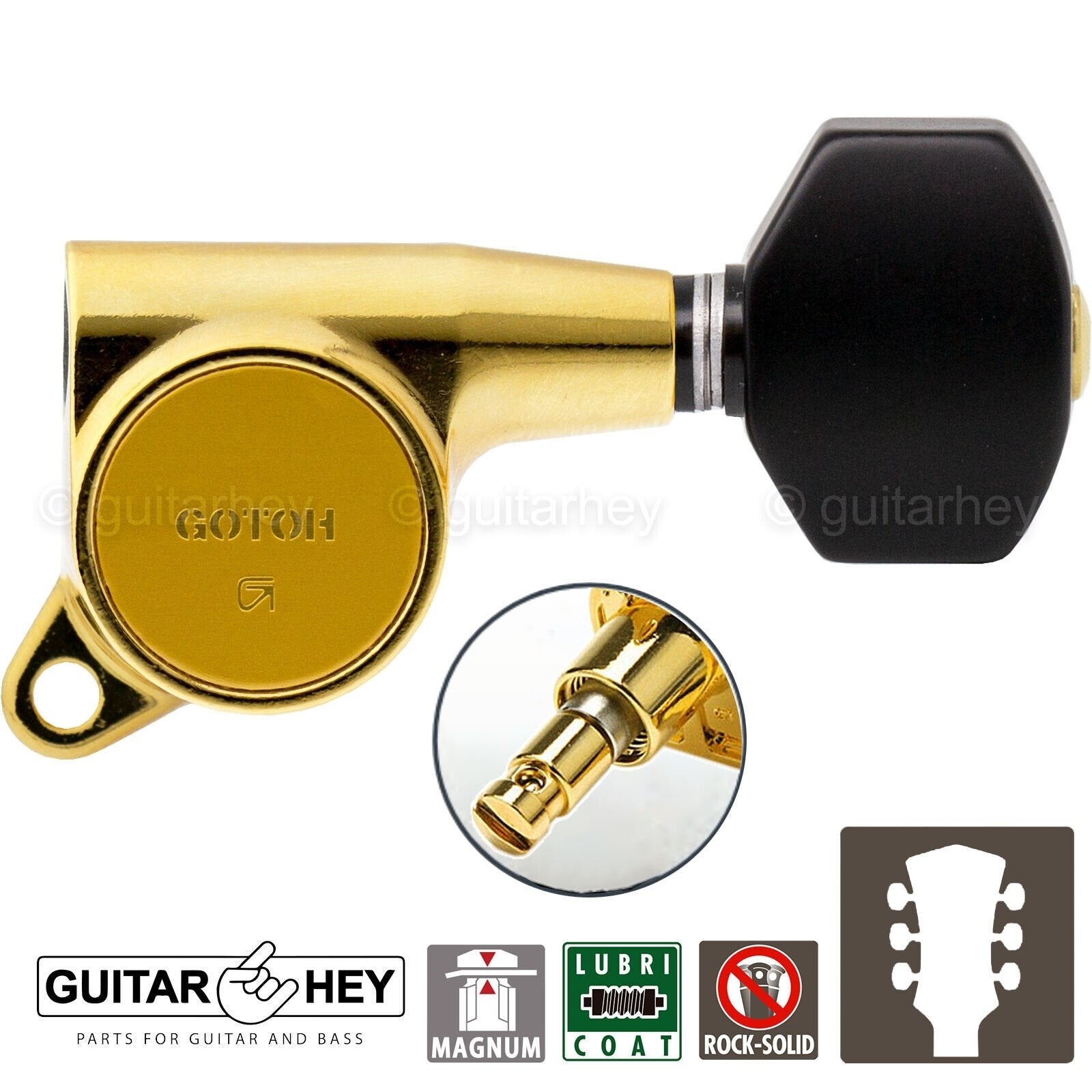 NEW Gotoh SG381-B07 MG Locking Tuning BLACK Plastic Buttons Keys Set 3x3 - GOLD