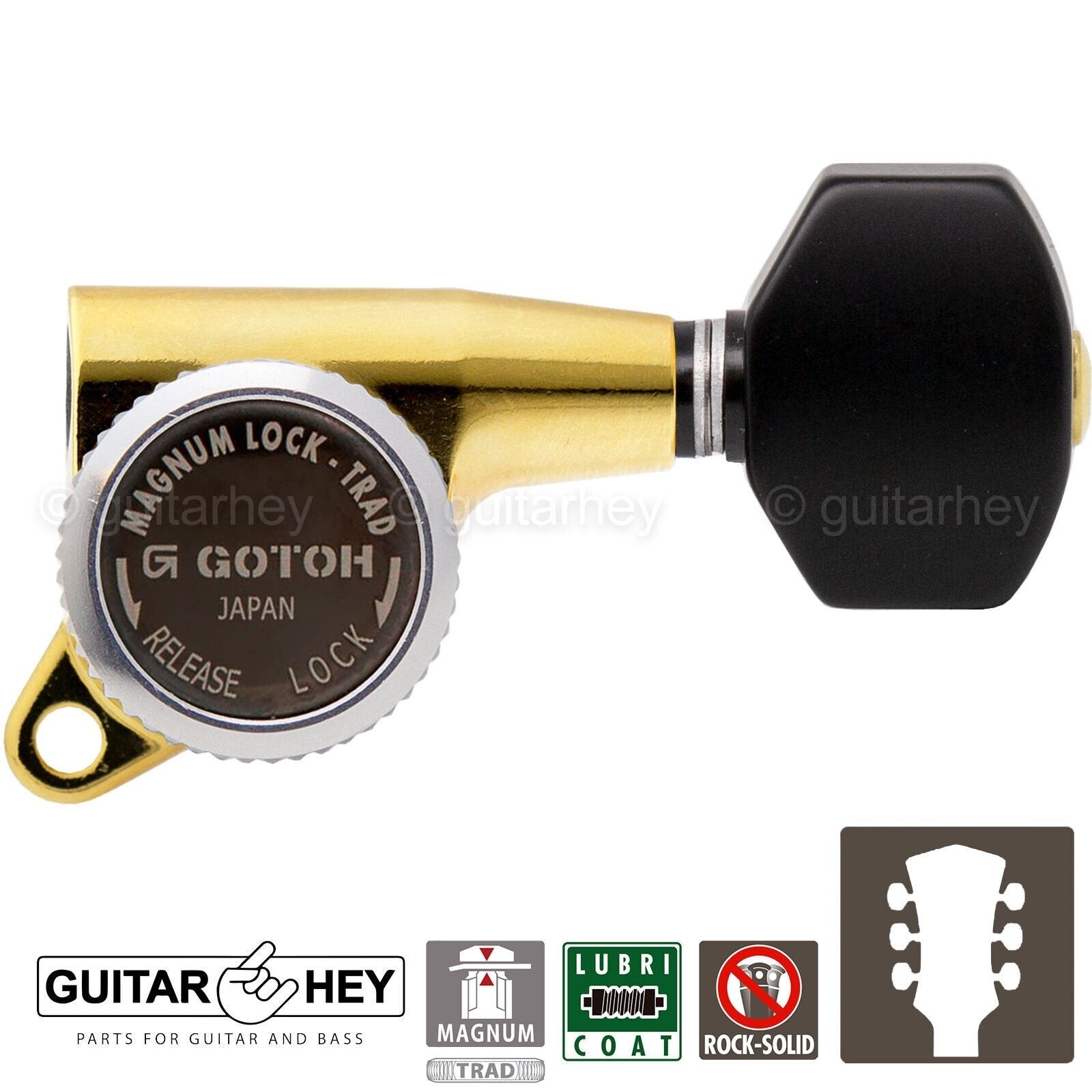 NEW Gotoh SG381-B07 MGT Locking Tuning BLACK Plastic Buttons Keys Set 3x3 - GOLD