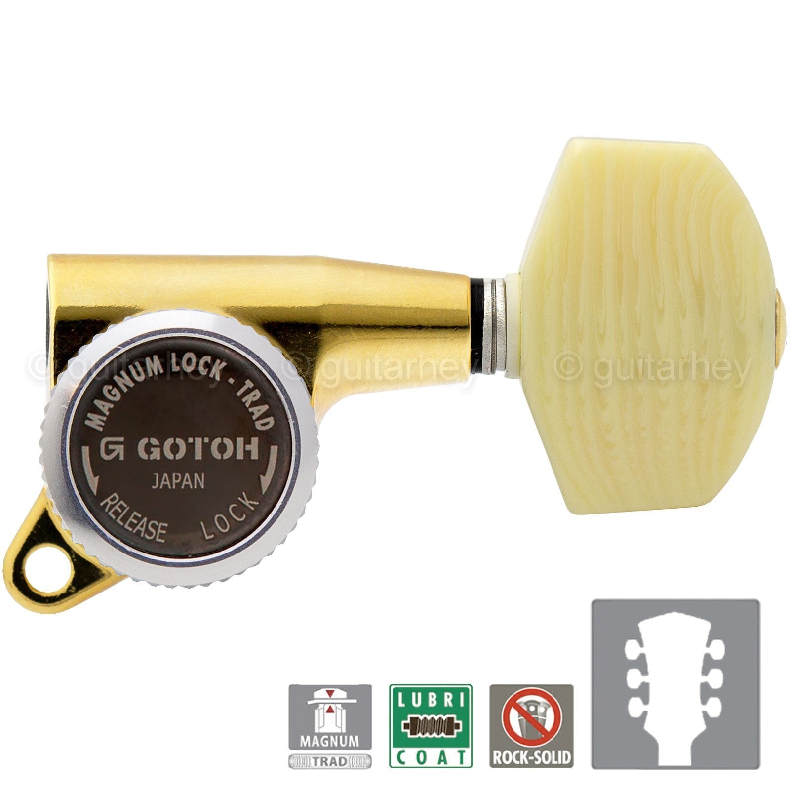 NEW Gotoh SG381-M01 MGT Locking Tuners Keys L3+R3 LARGE IVORY Buttons 3x3 - GOLD