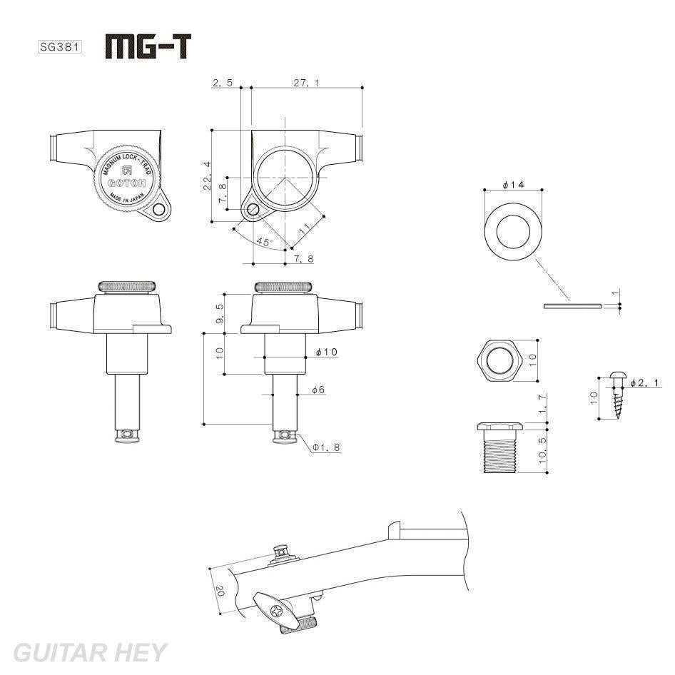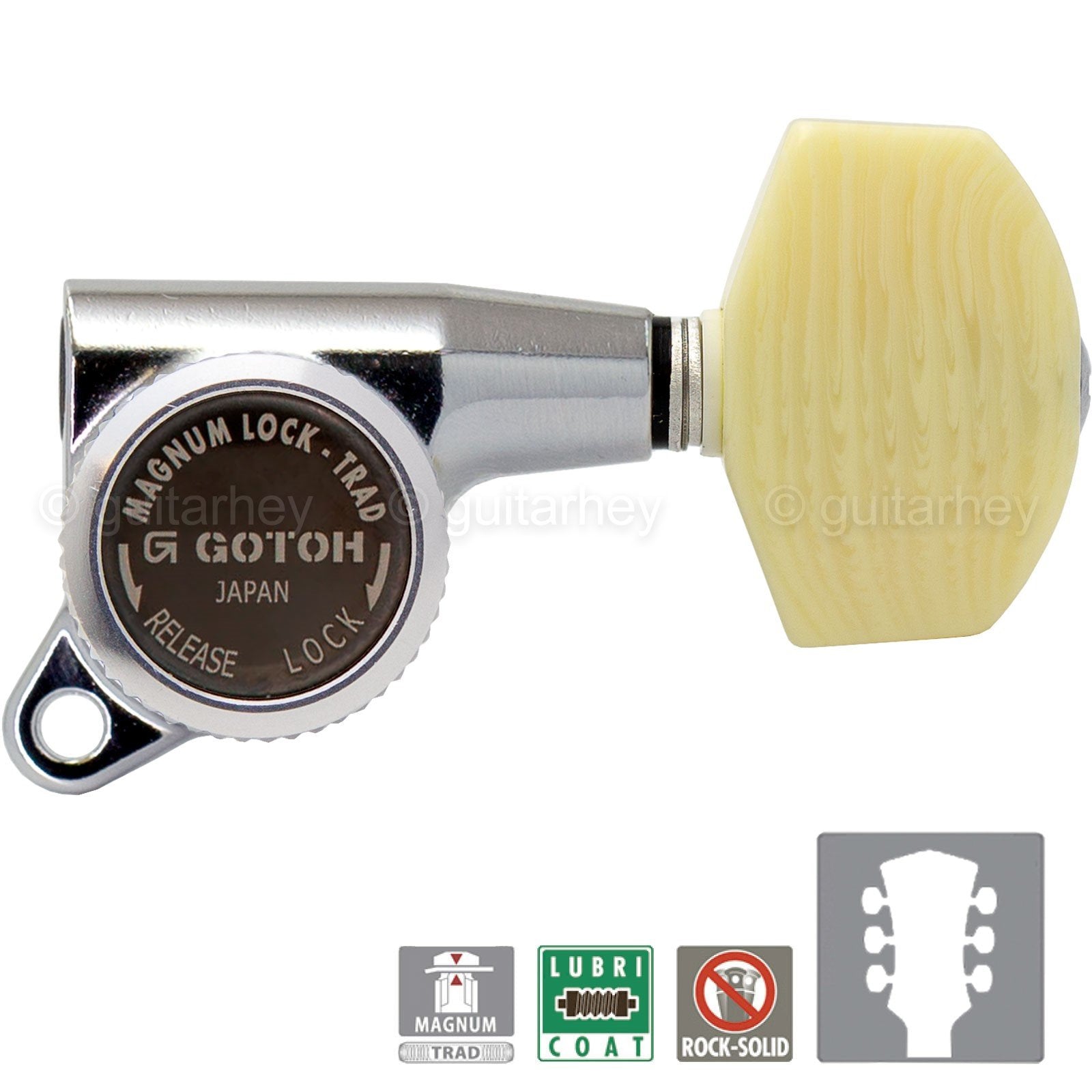 NEW Gotoh SG381-M01 MGT Locking Tuners L3+R3 LARGE IVORY Buttons 3x3 - CHROME