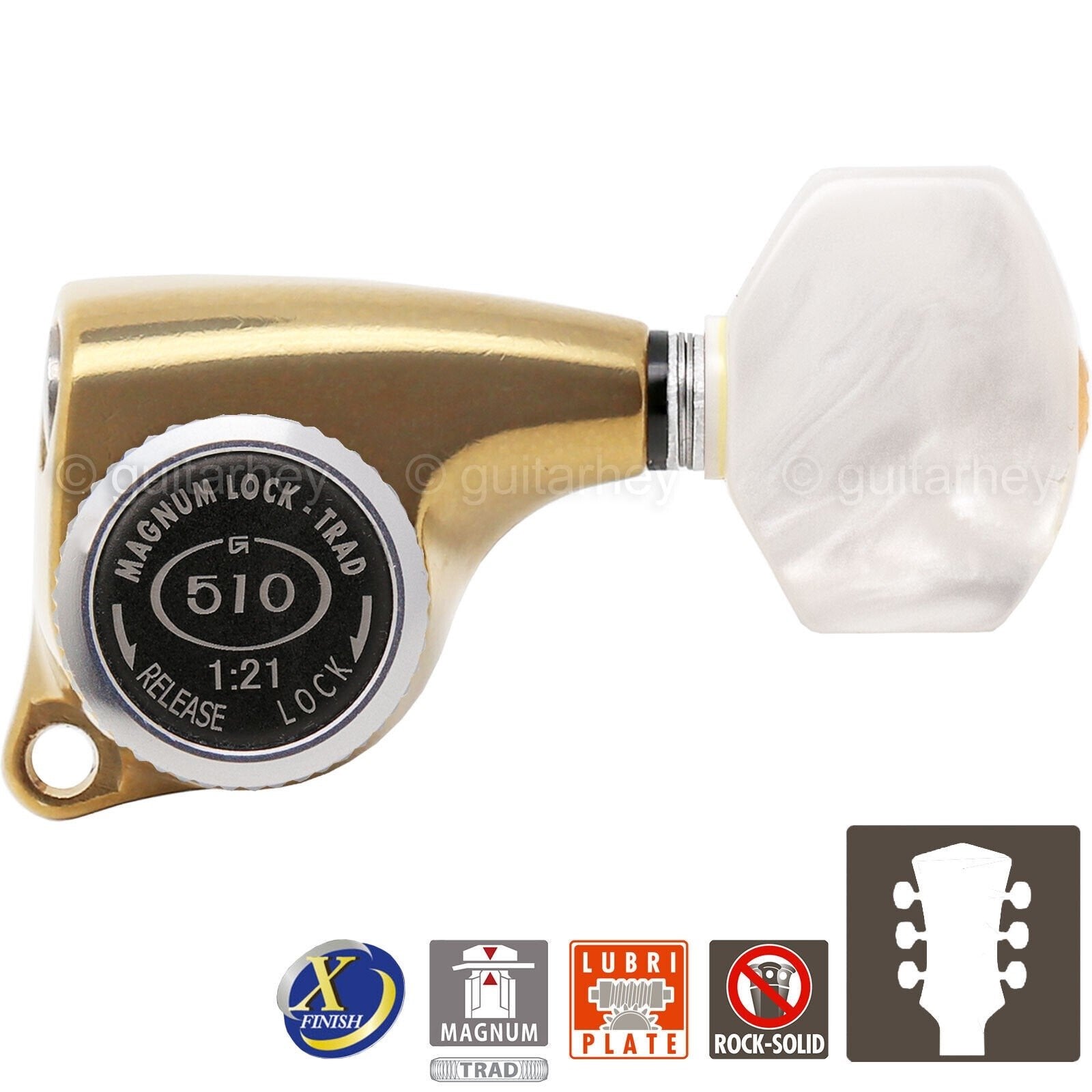 NEW Gotoh SGL510Z-P7 MGT Locking Tuning Keys 21:1 Ratio Set 3x3, ANTIQUE X-GOLD