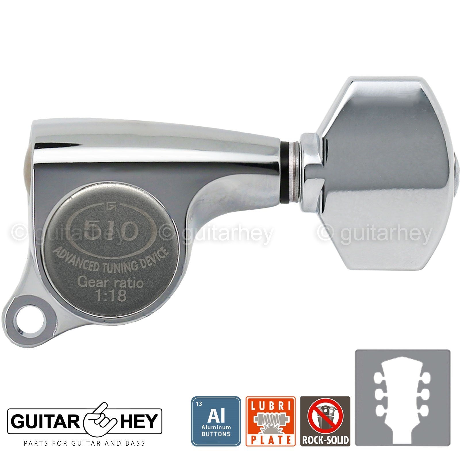 Gotoh 510 top of the line super tuning machine heads feature the accuracy and reliability Gotoh is famous for. They features a 18:1 gear ratio for precise, accurate tuning in a small footprint, and a die-cast enclosure that is permanently sealed and lubricated for years of smooth operation.