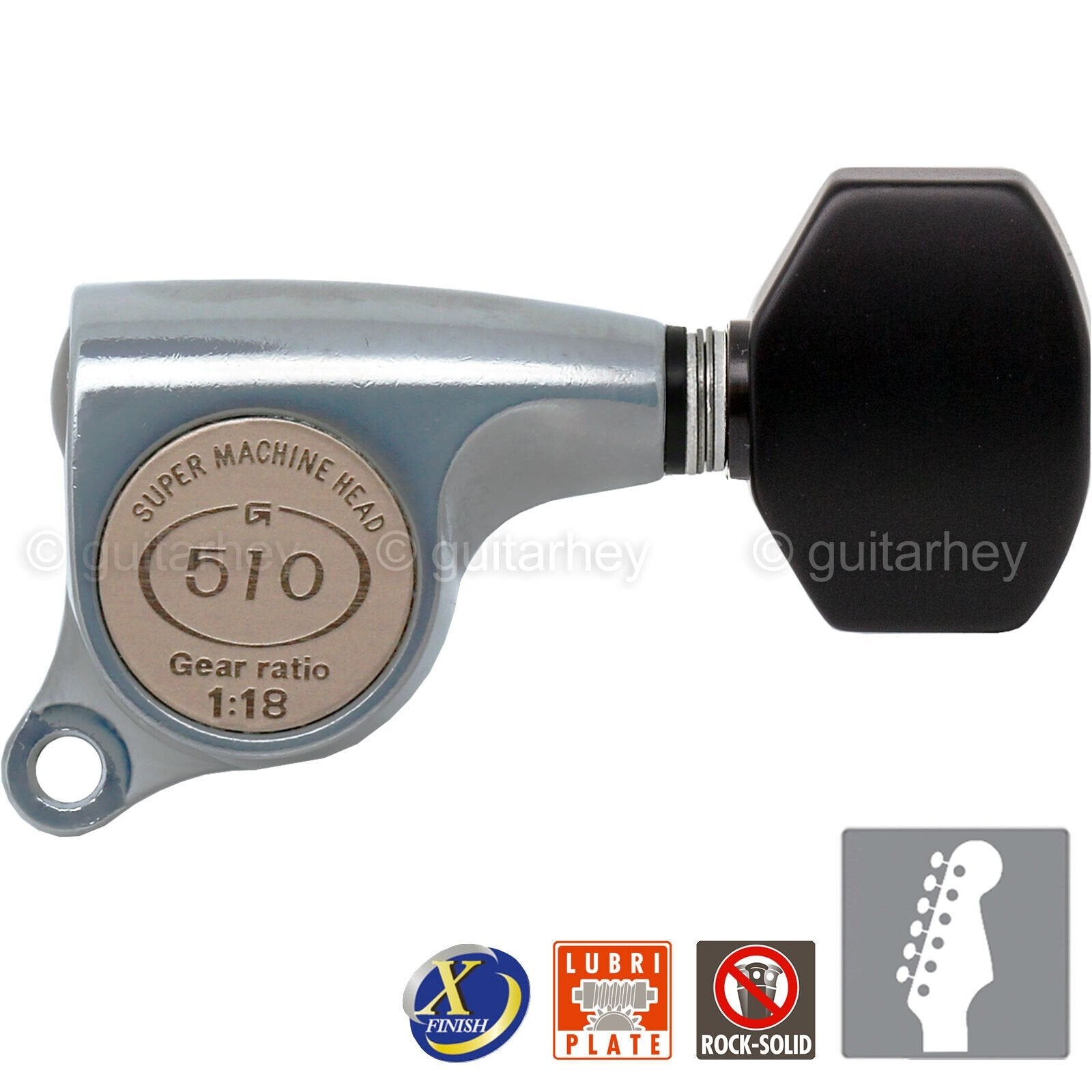 NEW Gotoh SGS510Z-B07 6 in Line Set Mini Tuners PLASTIC Buttons 18:1 - X-CHROME