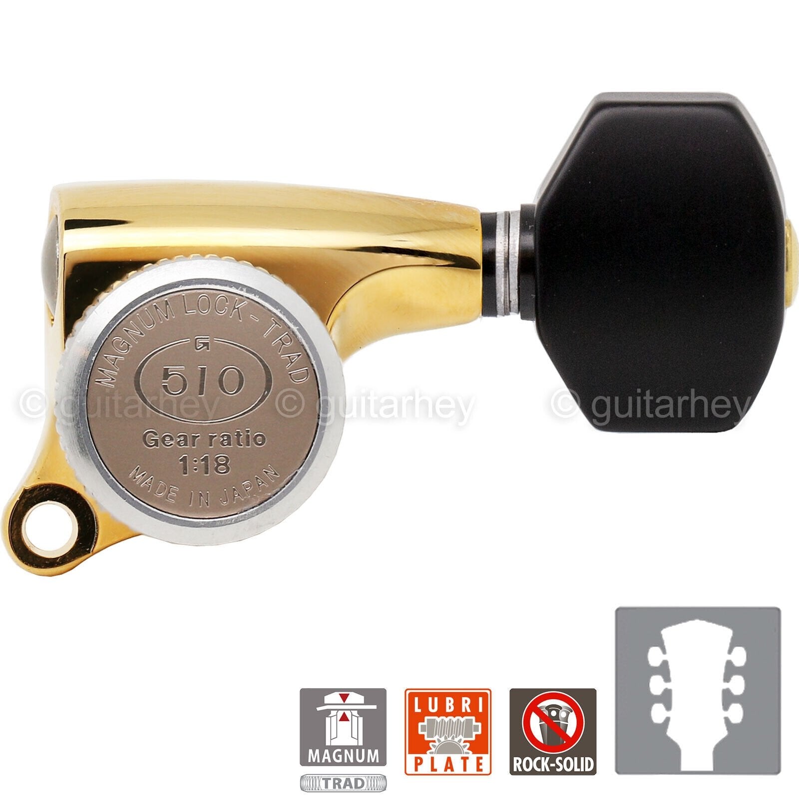 NEW Gotoh SGS510Z-B07 MGT L3+R3 Set Mini LOCKING Tuners 1:18 Ratio 3x3 - GOLD