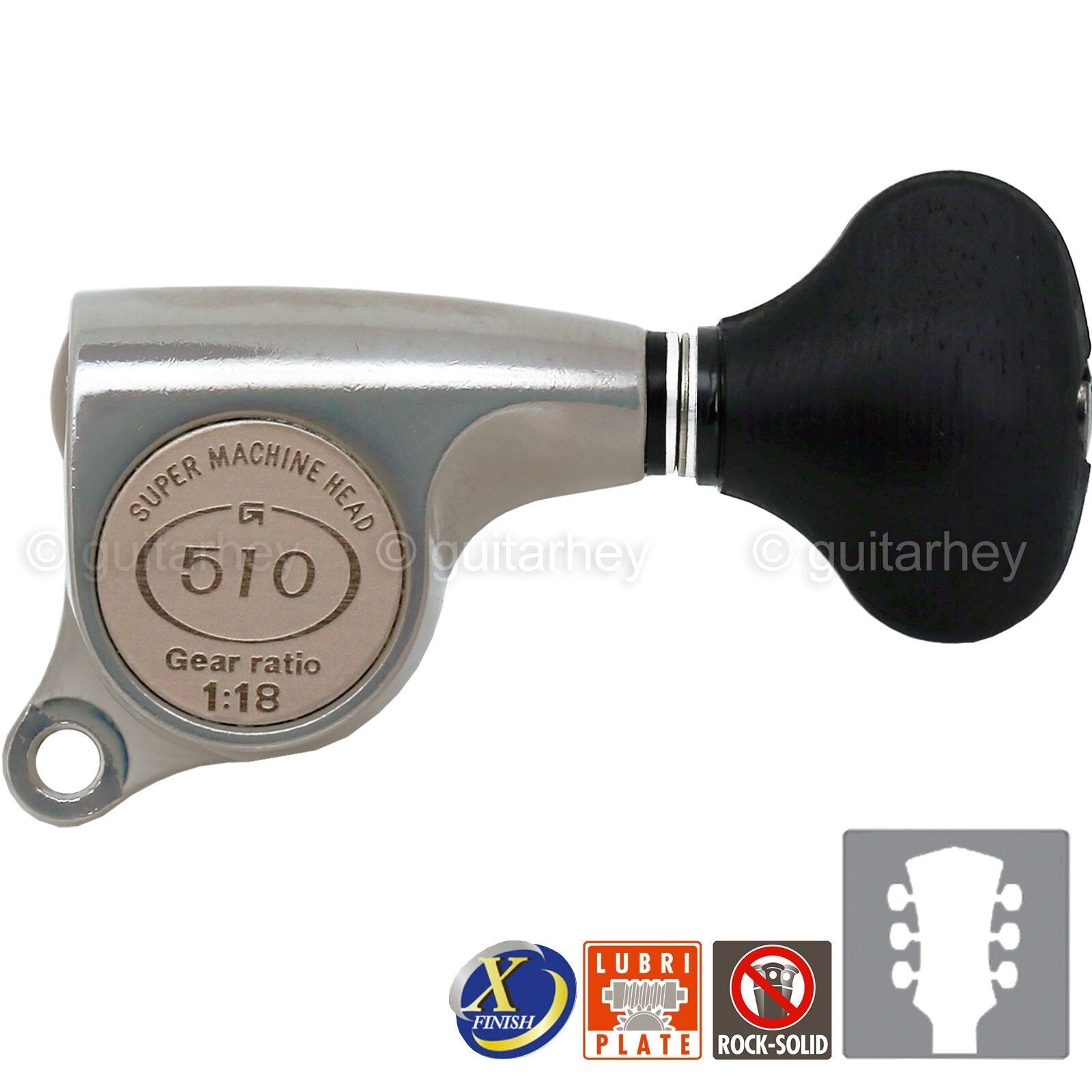 Gotoh 510 series top of the line super tuning machine heads feature the accuracy and reliability Gotoh is famous for. They features a 18:1 gear ratio for precise, accurate tuning in a small footprint, and a die-cast enclosure that is permanently sealed and lubricated for years of smooth operation.