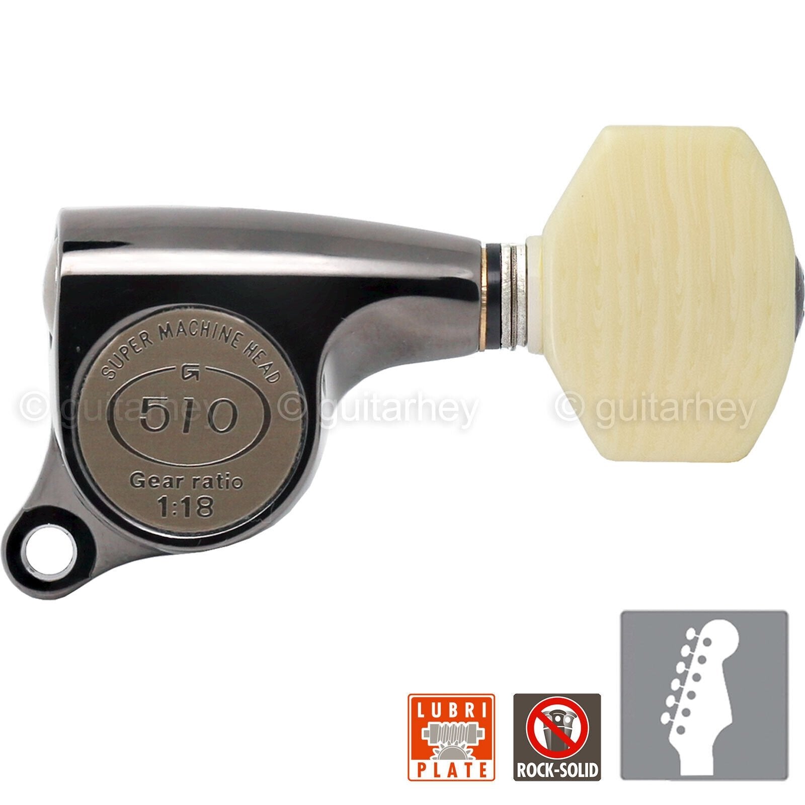 NEW Gotoh SGS510Z-M07 6 in Line Set Mini Tuners IVORY Buttons 18:1 - COSMO BLACK