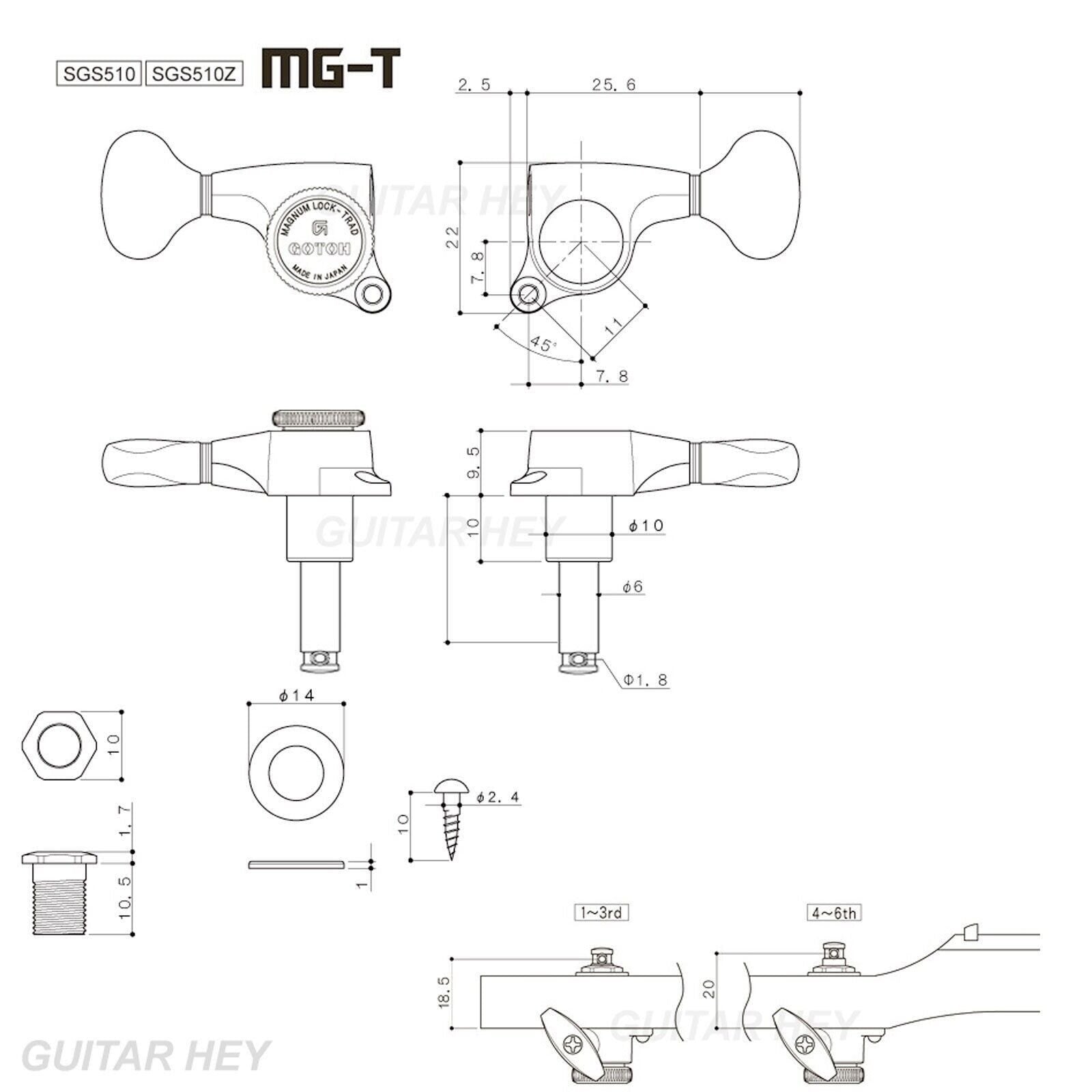 NEW Gotoh SGS510Z-M07 MGT 6 in line Set LOCKING w/ IVORY Buttons - COSMO BLACK