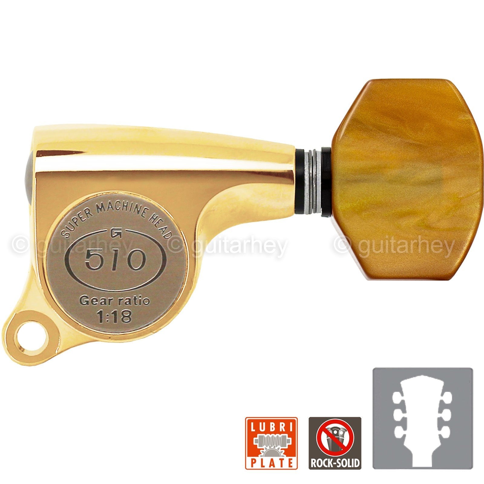 NEW Gotoh SGS510Z-P8 L3+R3 Set Mini Tuners AMBER Buttons 1:18 Ratio 3x3 - GOLD