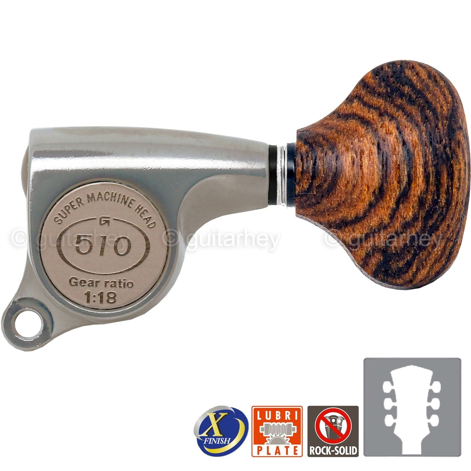 Gotoh 510 series top of the line super tuning machine heads feature the accuracy and reliability Gotoh is famous for. They features a 18:1 gear ratio for precise, accurate tuning in a small footprint, and a die-cast enclosure that is permanently sealed and lubricated for years of smooth operation.