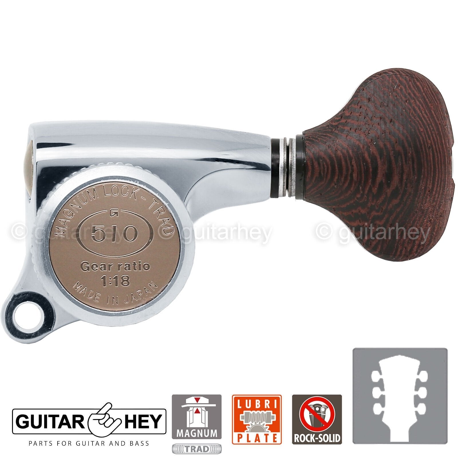 Gotoh 510 top of the line super tuning machine heads feature the accuracy and reliability Gotoh is famous for. They features a 18:1 gear ratio for precise, accurate tuning in a small footprint, and a die-cast enclosure that is permanently sealed and lubricated for years of smooth operation.