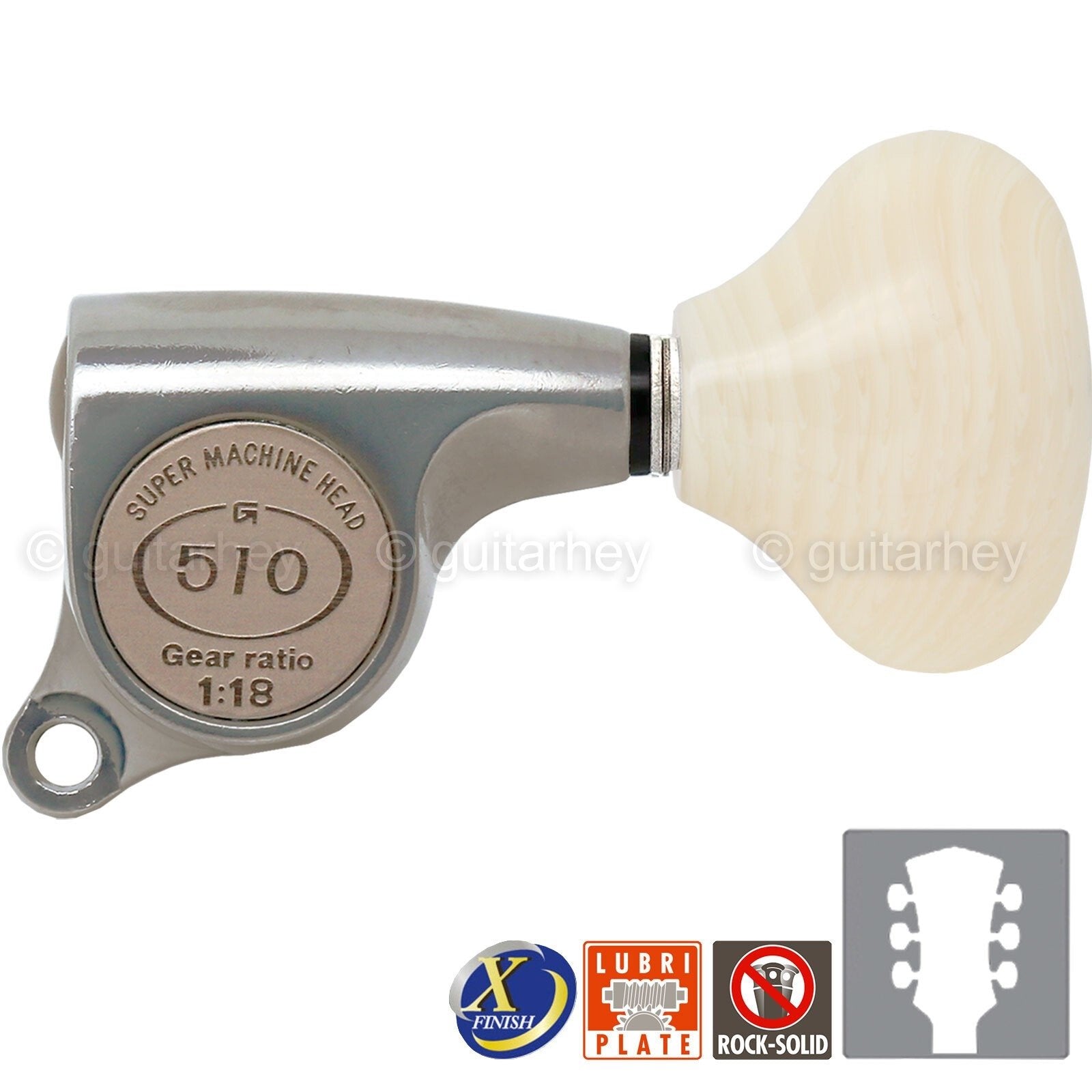 Gotoh 510 series top of the line super tuning machine heads feature the accuracy and reliability Gotoh is famous for. They features a 18:1 gear ratio for precise, accurate tuning in a small footprint, and a die-cast enclosure that is permanently sealed and lubricated for years of smooth operation.