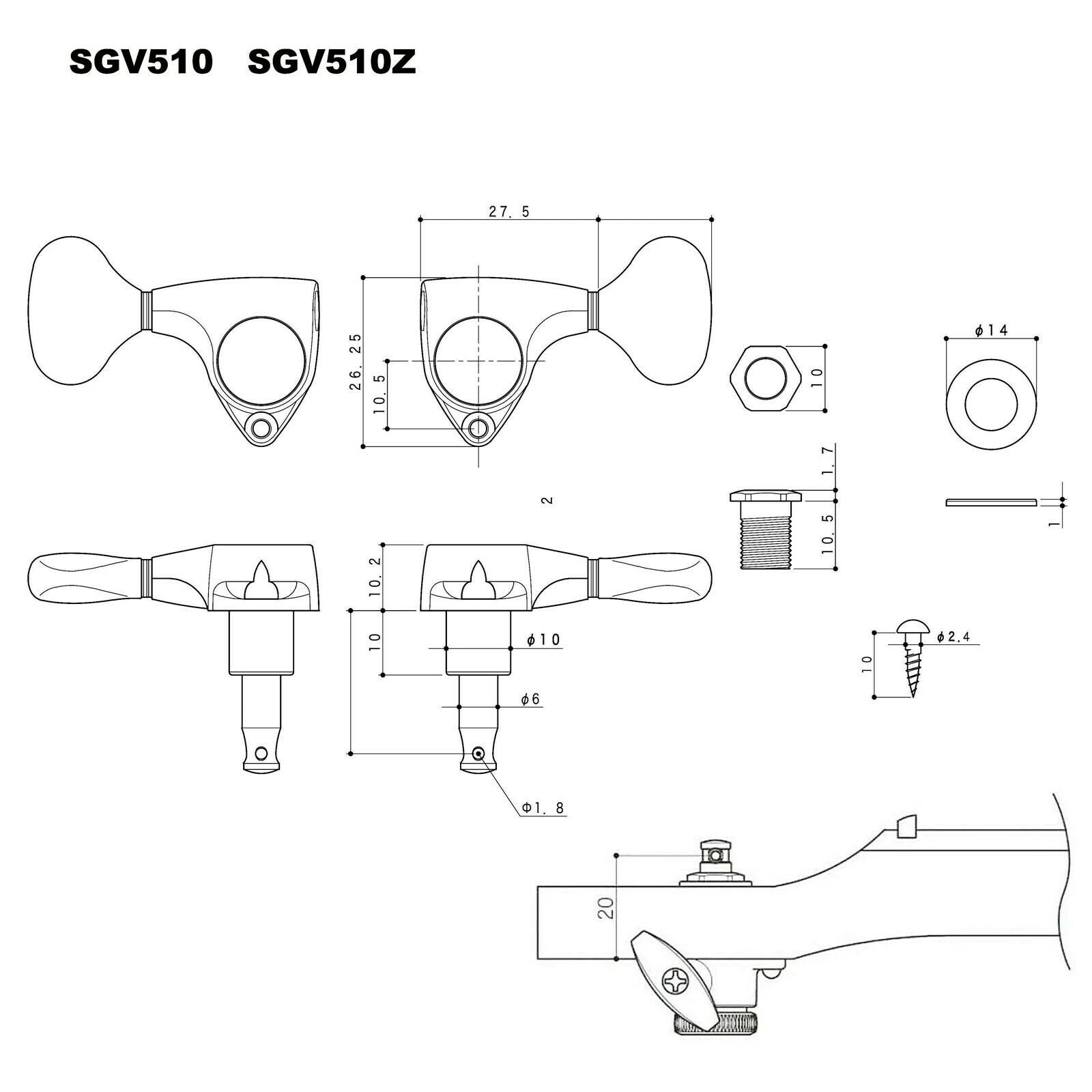NEW Gotoh SGV510Z-P8 MGT L3+R3 LOCKING Tuners Set 21:1 Gear 3x3 - COSMO BLACK