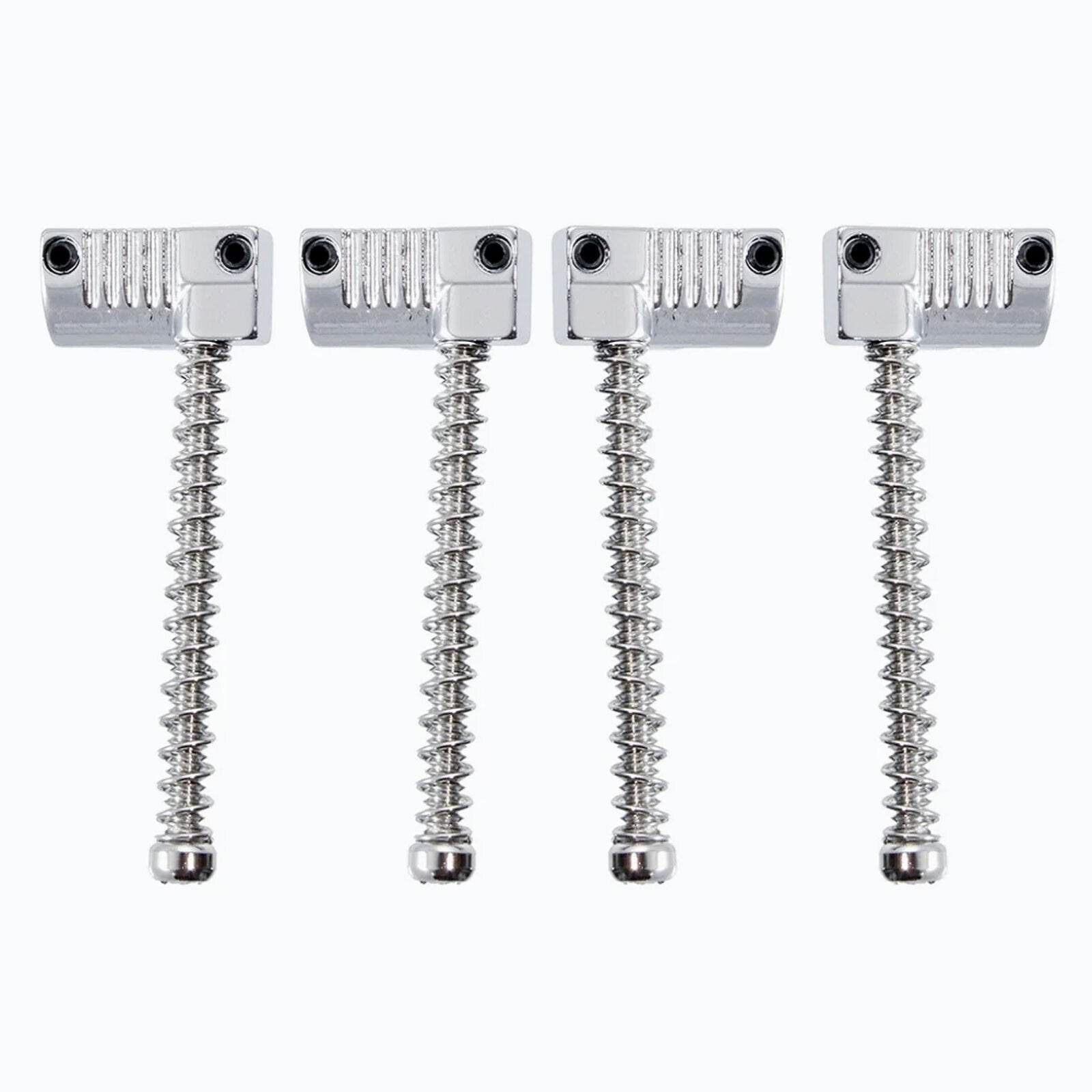 Set of 4 grooved saddles for Badass and Omega Bass ® bridges. Includes screws and springs.