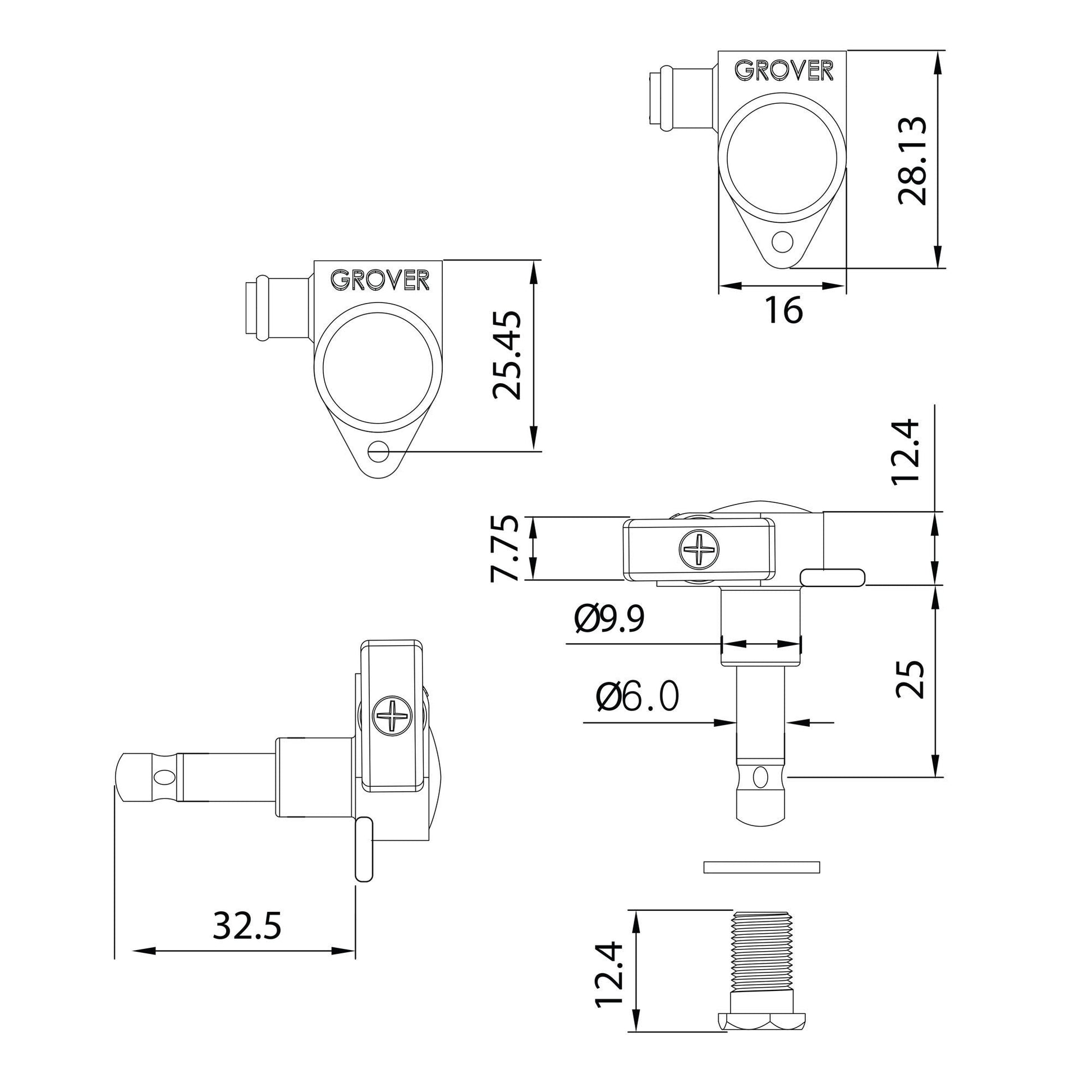 NEW Grover 106 Original Locking Rotomatic Tuners Keystone Buttons 3x3 - GOLD