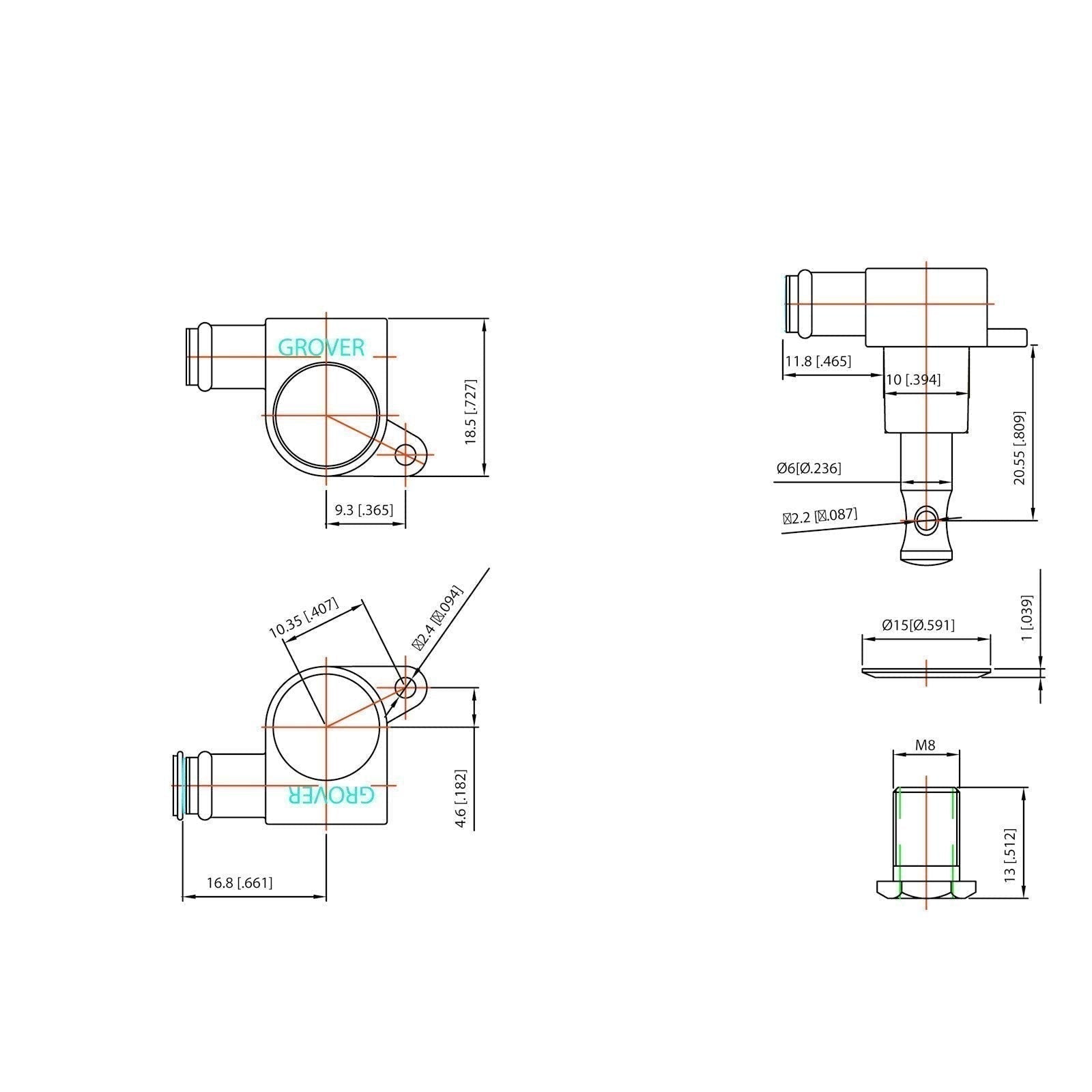 Totally professional in design and performance. Small, lightweight, this precision made machine fits guitar headpeices that will not take full size machines. The mini buttons provide more space for player’s fingers (even large fingers) to tune strings. Gear ratio is 14 to 1. Sealed in lubrication keeps the mini perfect for a lifetime! Includes 5/8” washers, bushings and wood screws.