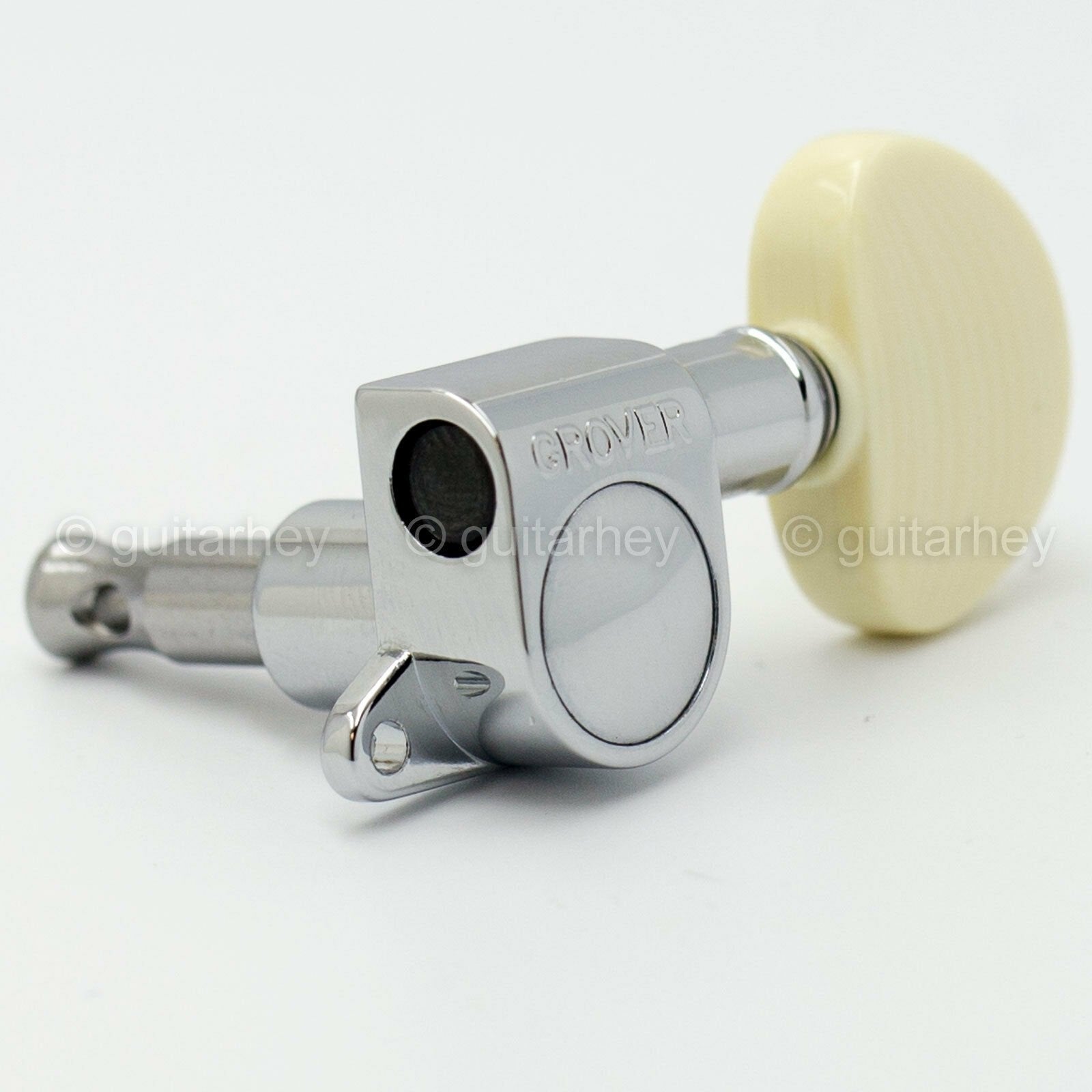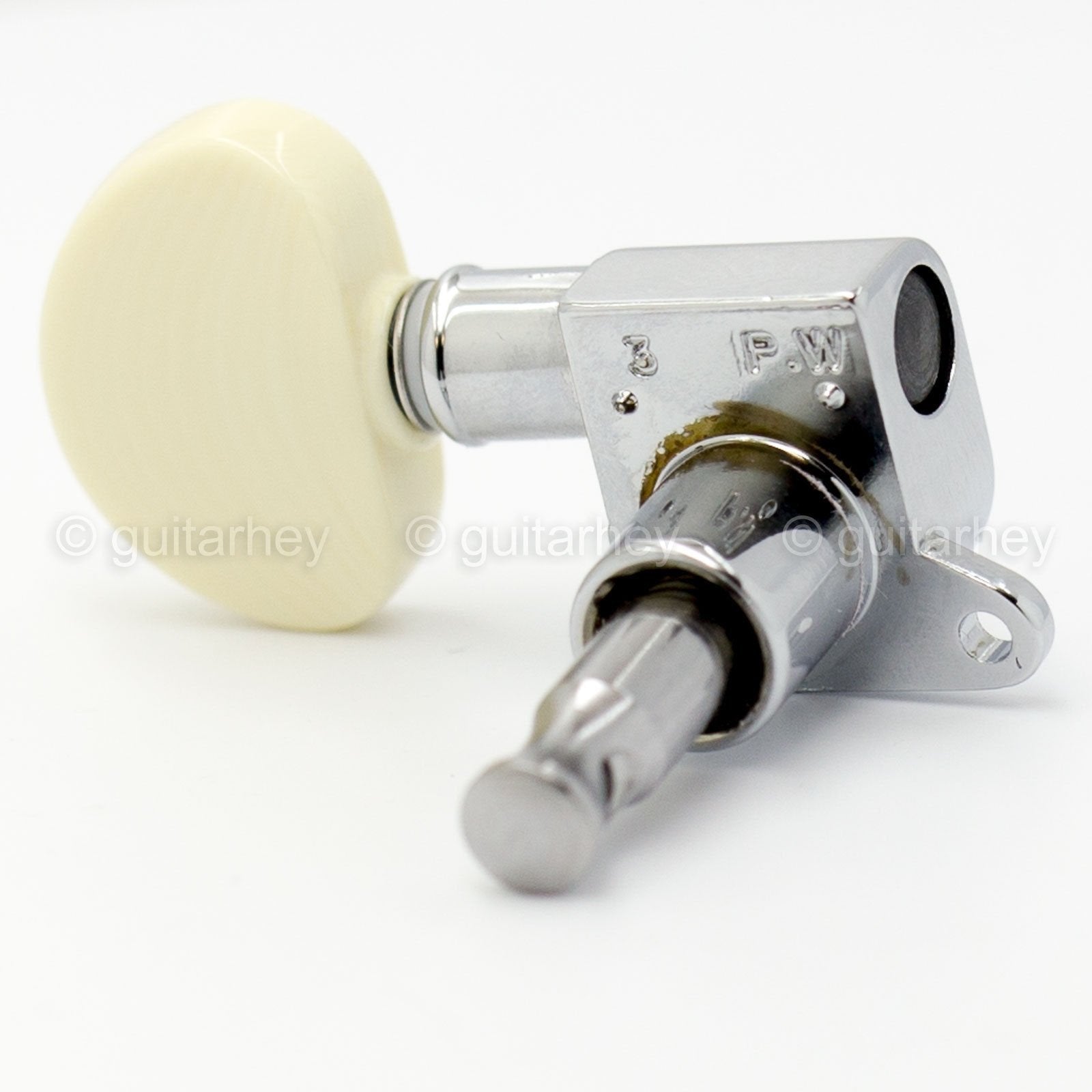 Totally professional in design and performance. Small, lightweight, this precision made machine fits guitar headpeices that will not take full size machines. The mini buttons provide more space for players fingers (even large fingers) to tune strings. Gear ratio is 14 to 1. Sealed in lubrication keeps the mini perfect for a lifetime! Includes 5/8 washers, bushings and wood screws.
