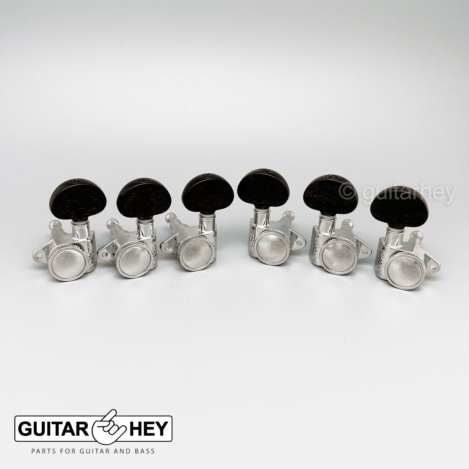 NEW Grover 502 LOCKING Tuners 3x3 Modern Gibson Les Paul EBONY Buttons NICKEL