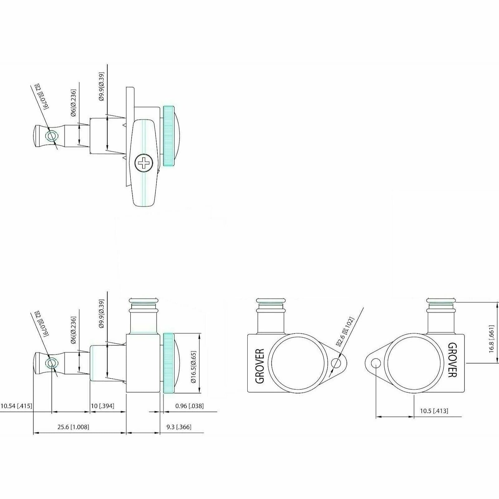 These locking machine heads utilize the famous 18:1 Rotomatic® design with a “thumb screw” mechanism which locks the string into place. Insert the string through the post hole, wrap around once, then lock by tightening with the thumb screw. Perfect replacement for the most standard machine heads. Includes all mounting hardware.
