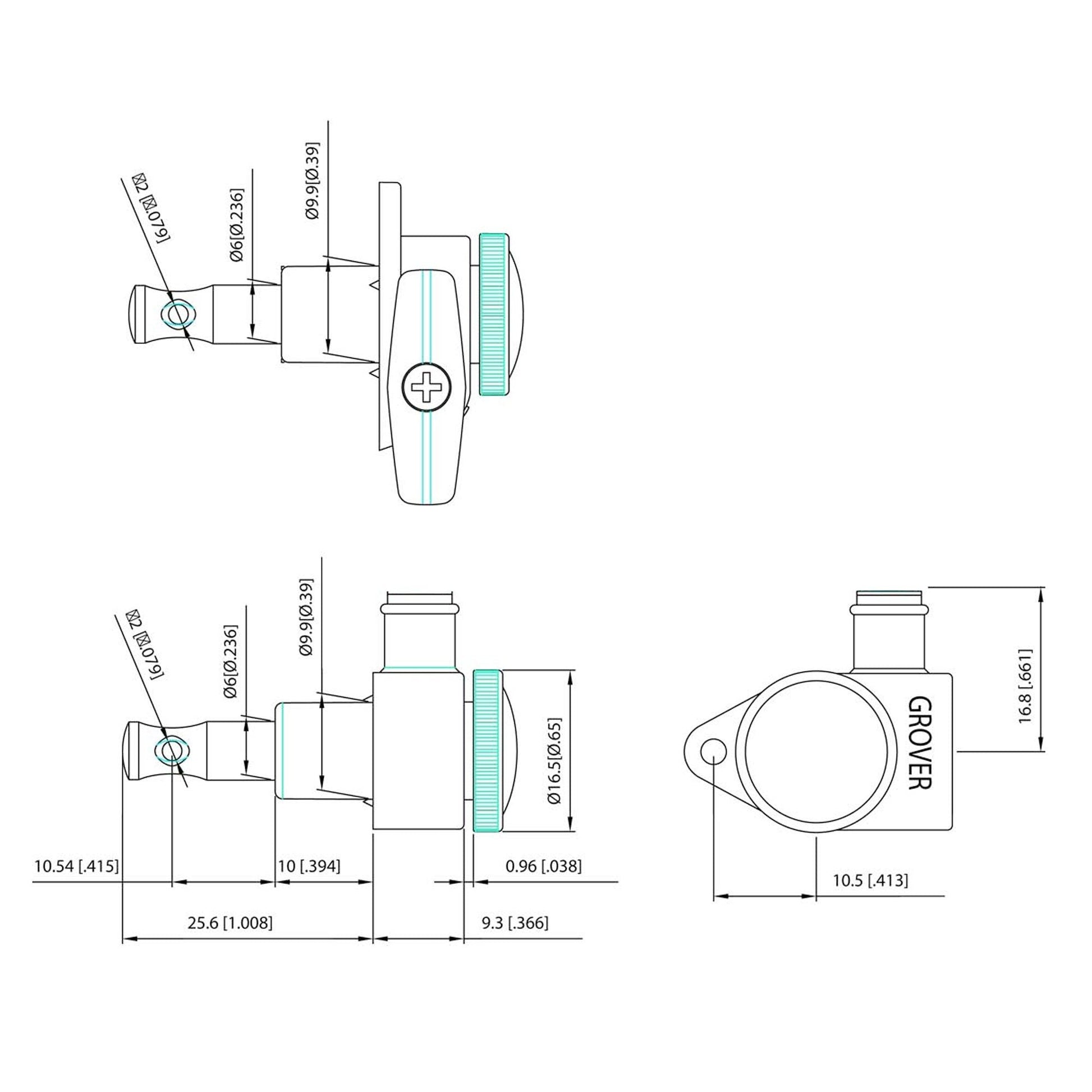 These locking machine heads utilize the famous 18:1 Rotomatic® design with a “thumb screw” mechanism which locks the string into place. Insert the string through the post hole, wrap around once, then lock by tightening with the thumb screw. Perfect replacement for the most standard machine heads. Includes all mounting hardware.