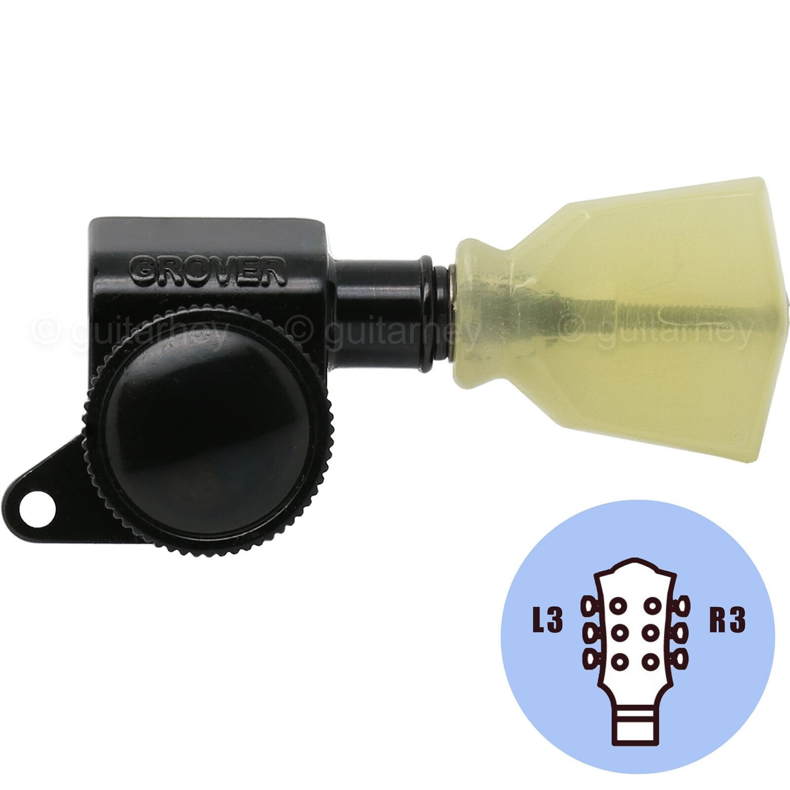 NEW Grover 505 Mini Roto-Grip L3+R3 Locking Rotomatic Tuners TULIP 3x3 - BLACK