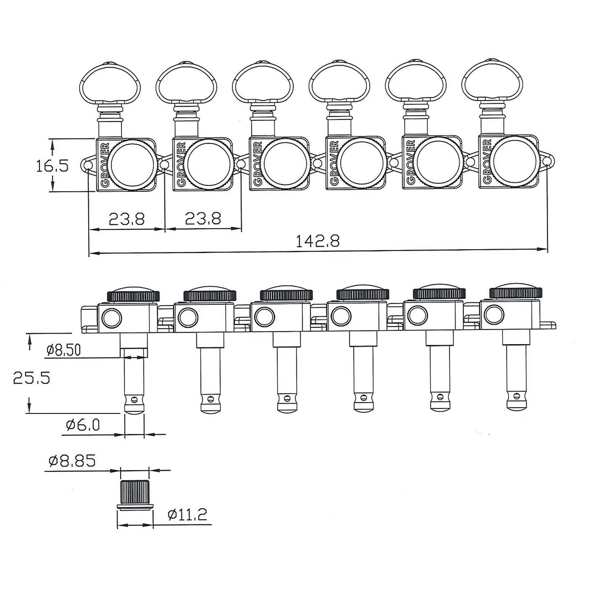 Set of 6 includes mounting screws and round vintage-style press-fit peghead bushings for 8.8mm peghole.