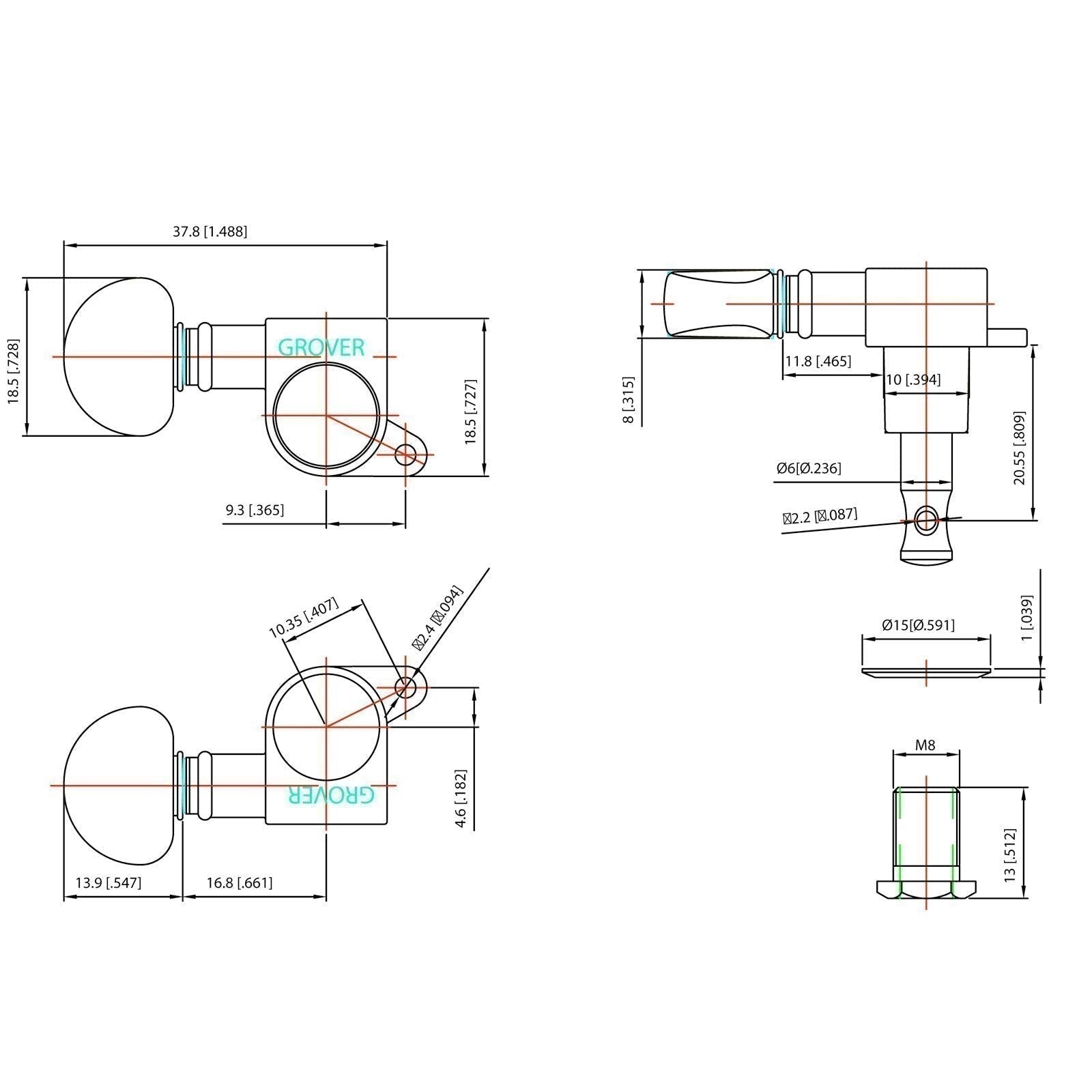 Totally professional in design and performance. Small, lightweight, this precision made machine fits guitar headpeices that will not take full size machines. The mini buttons provide more space for players fingers (even large fingers) to tune strings. Gear ratio is 14 to 1. Sealed in lubrication keeps the mini perfect for a lifetime! Includes 5/8 washers, bushings and wood screws.