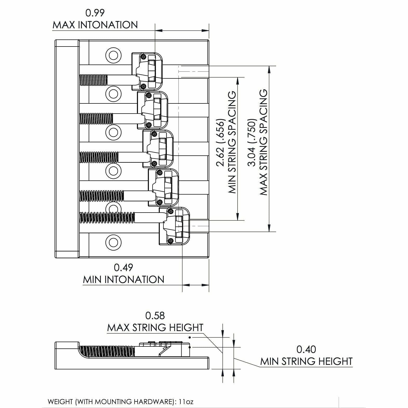 - Adjustable string spacing from a narrow .656" (17mm) to a wide .750" (19mm) and anywhere in between thanks to fully adjustable pre-notched brass inserts