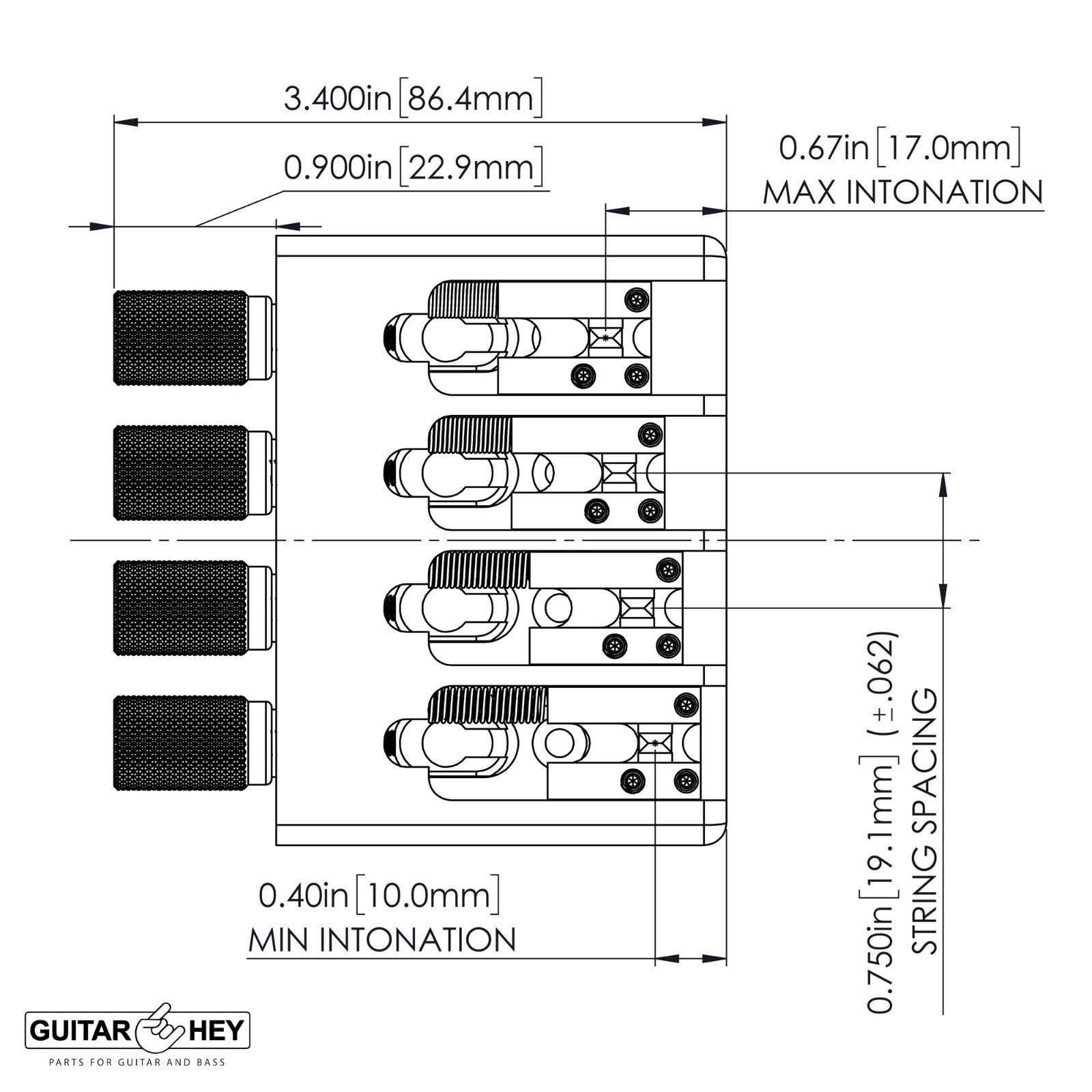 NEW Hipshot 5H400GB-750 4 String Bass Headless Bridge 19mm Spacing - GOLD