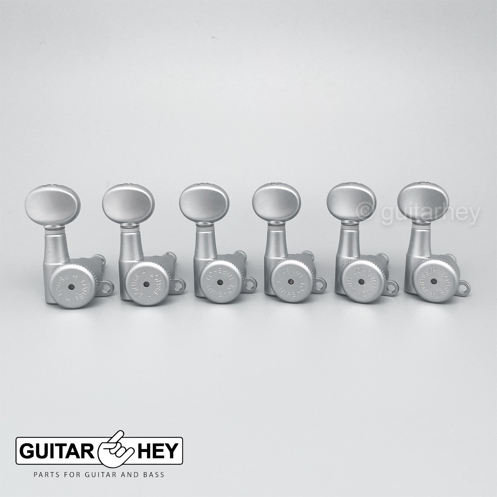 NEW Hipshot 6-in-Line STAGGERED Locking Tuners Mini OVAL Buttons - SATIN CHROME