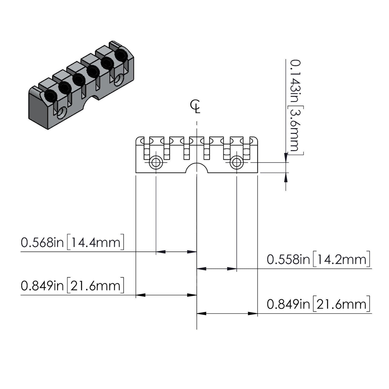 - Low profile headpiece for 6 string guitar