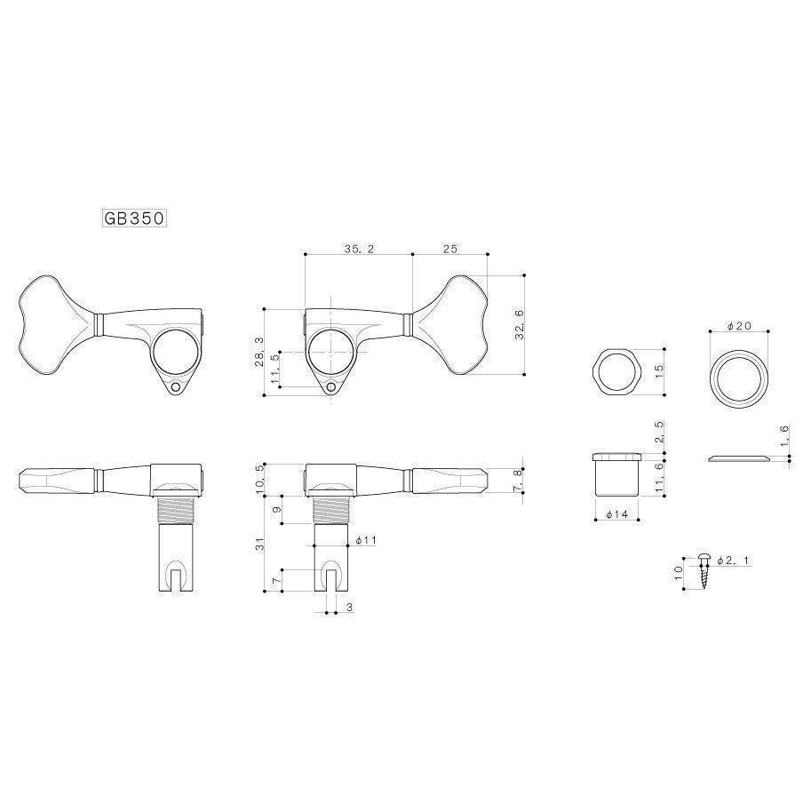 Gotoh GB350 RES-O-LITE Aluminum Bass 4-String Tuning Keys L2+R2 Set 2x2 - GOLD